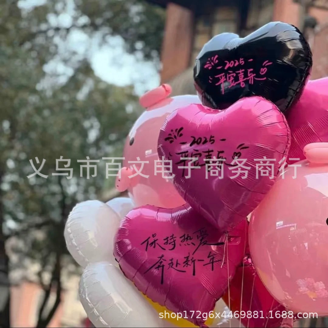 2025新年快乐铝膜球生日 元旦放飞18心形跨年氦气球飘空铝膜气球 投诉