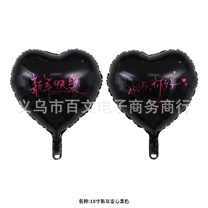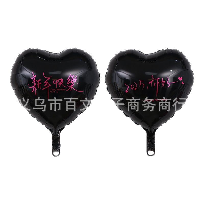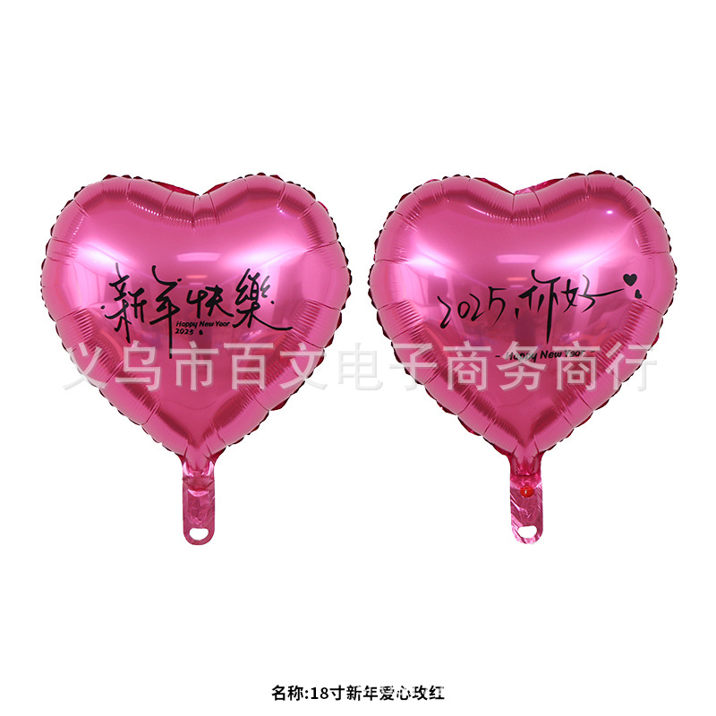 2025新年快乐铝膜球生日 元旦放飞18心形跨年氦气球飘空铝膜气球