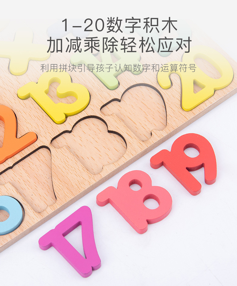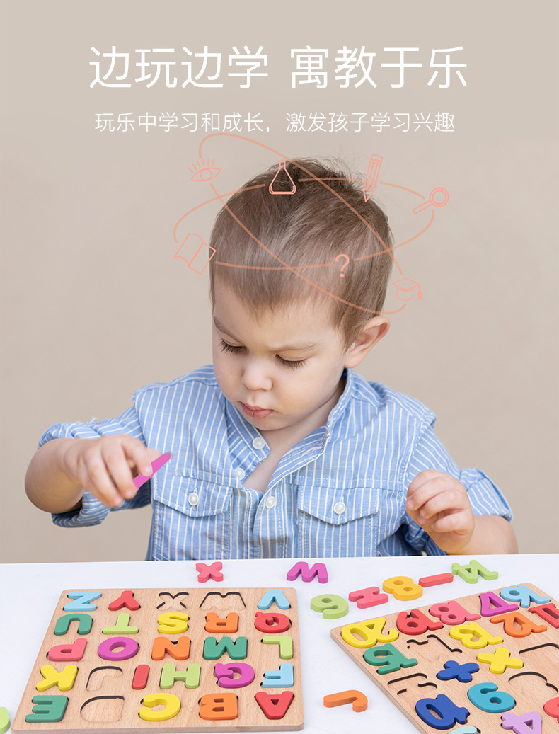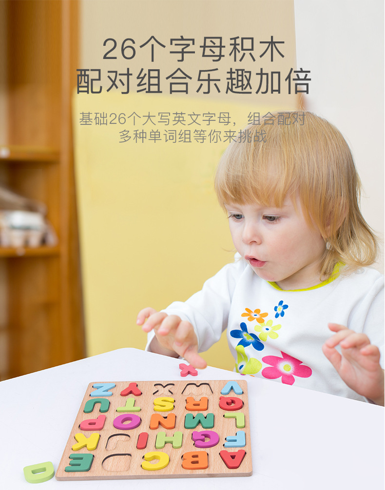 儿童木制数字字母认知形状配对智力开发手抓板益智幼儿园早教拼图