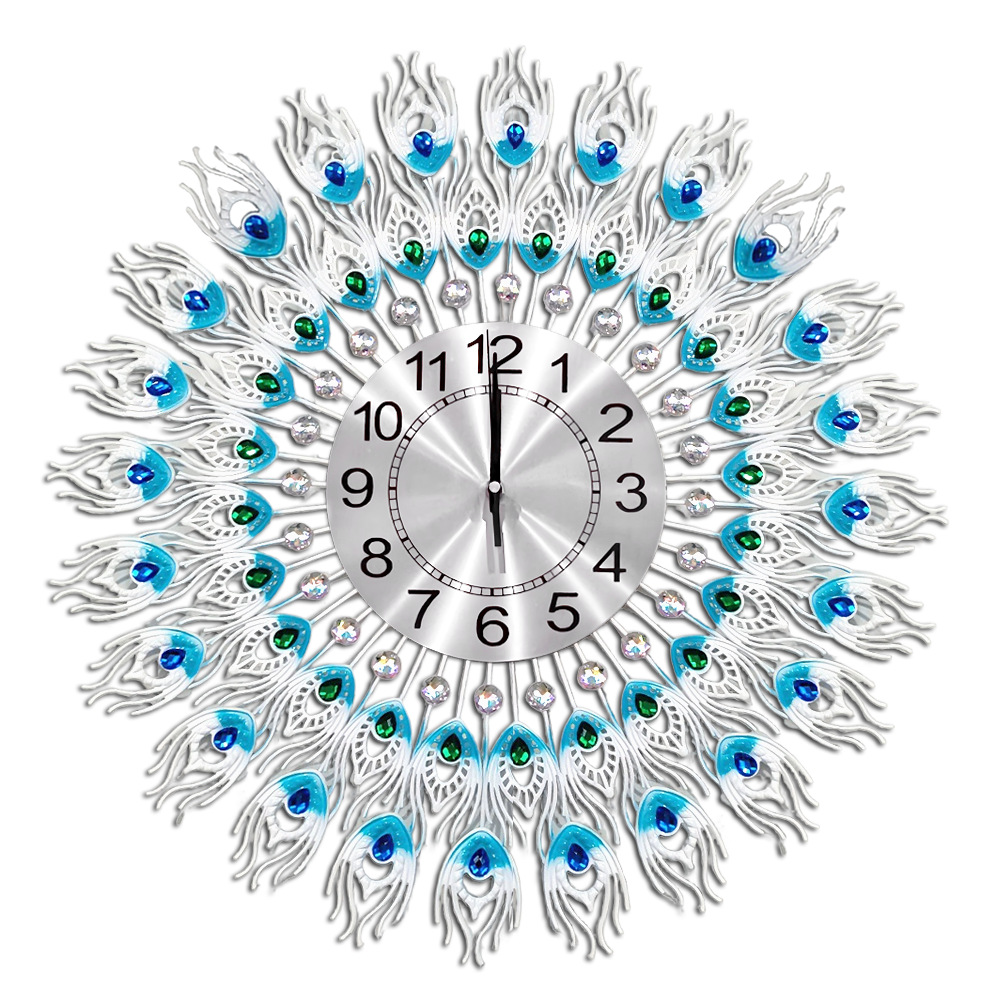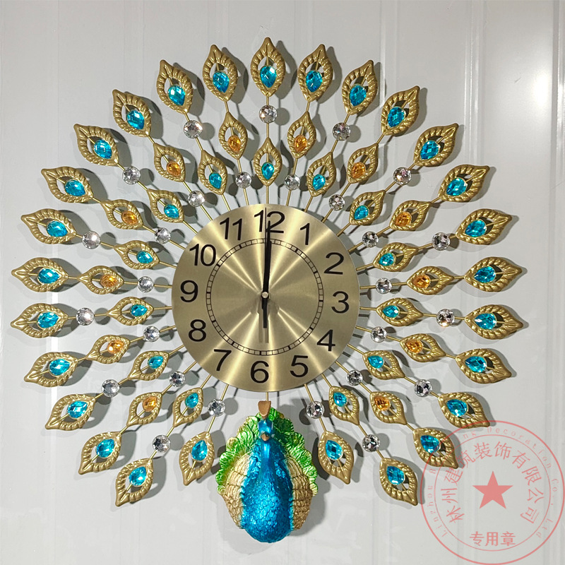 孔雀挂钟烤漆外贸奢华挂钟铁艺钟表批发客厅装饰静音时钟艺术 English | 投诉
