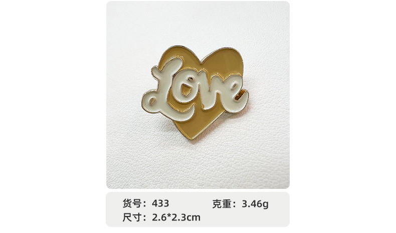 品牌: 其他 造型: 心形 处理工艺: 滴油 产地: 浙江 货号: RY433 系列: 胸针 主要下游平台: wish,快手,SHEIN,速卖通,天猫 颜色: RY433 纯度: 合金 有可授权的自有品牌: 否 重量: 0.005 kg/个