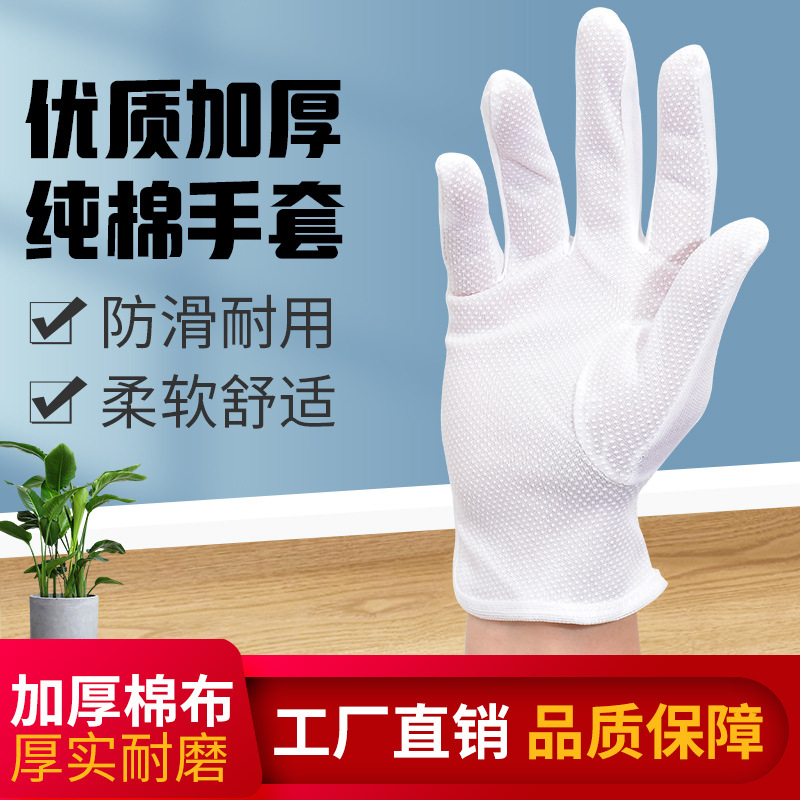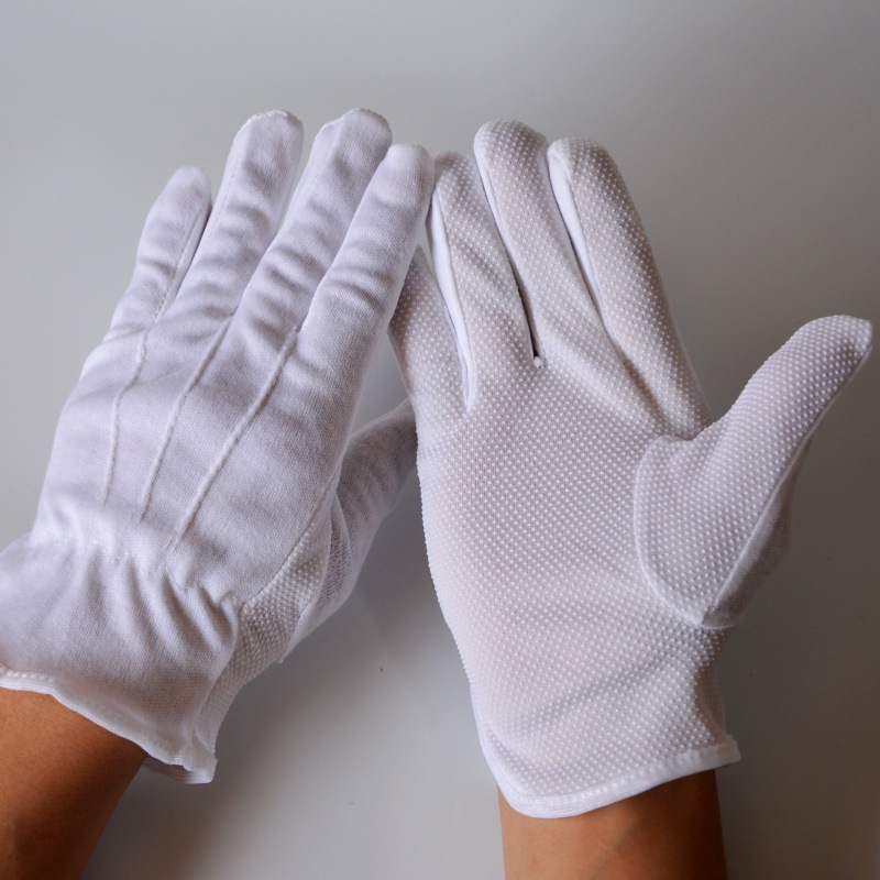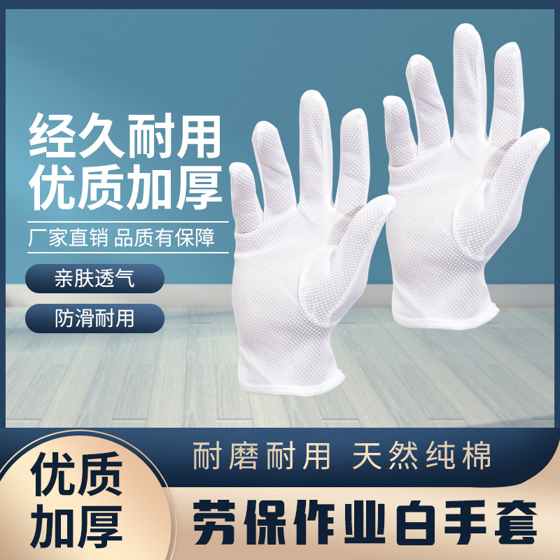 棉毛点塑手套 白色点珠防滑颗粒礼仪司机白棉PVC点胶滴塑手套