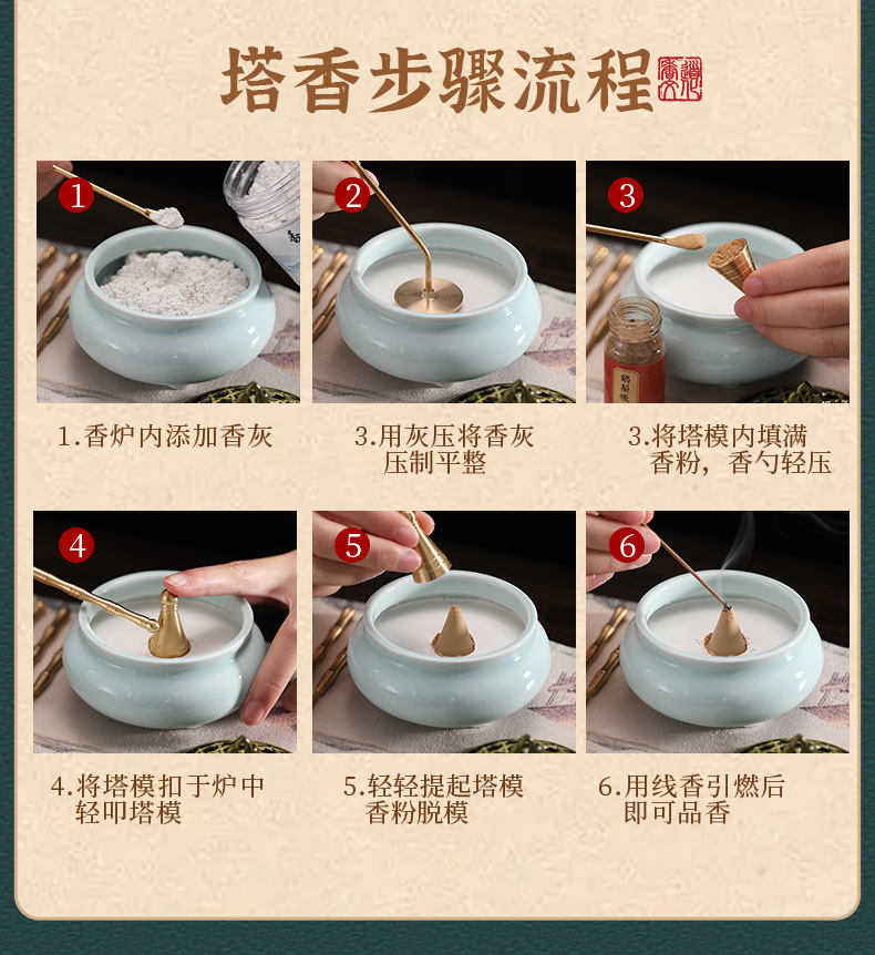 黄铜香炉香道香粉塔香制作工具香具套装香粉打篆香篆工具礼盒装