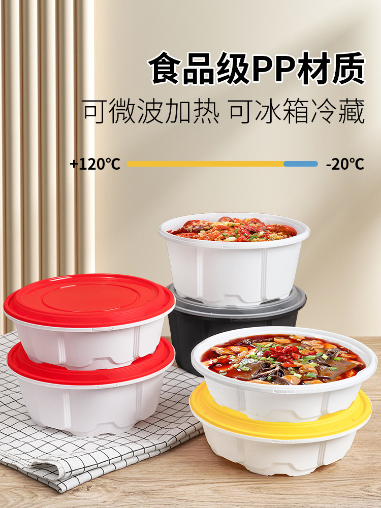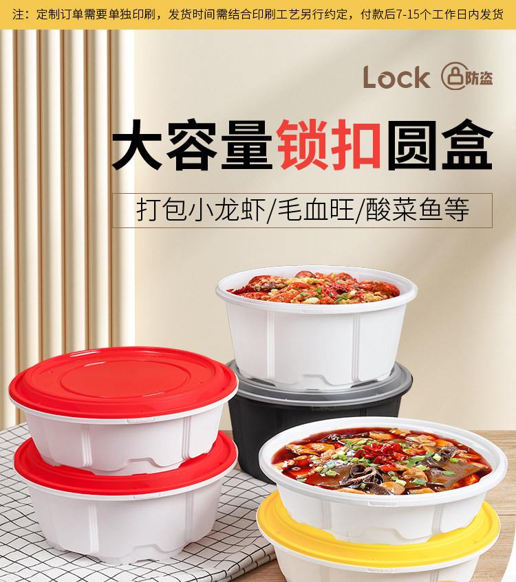 2000/2500圆形一次性餐盒防盗锁扣快餐打包盒小龙虾酸菜鱼外卖盆 English | 投诉
