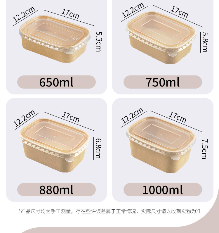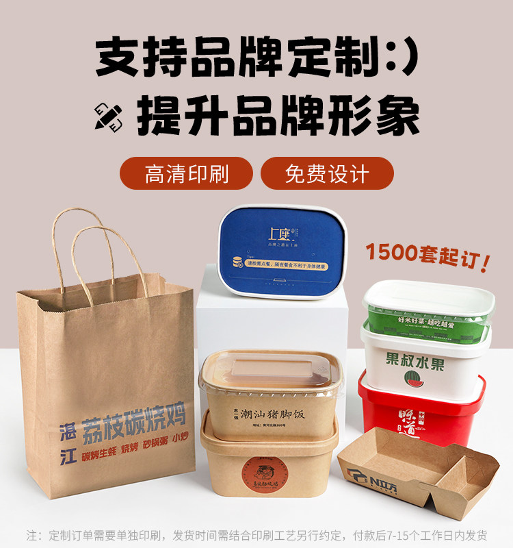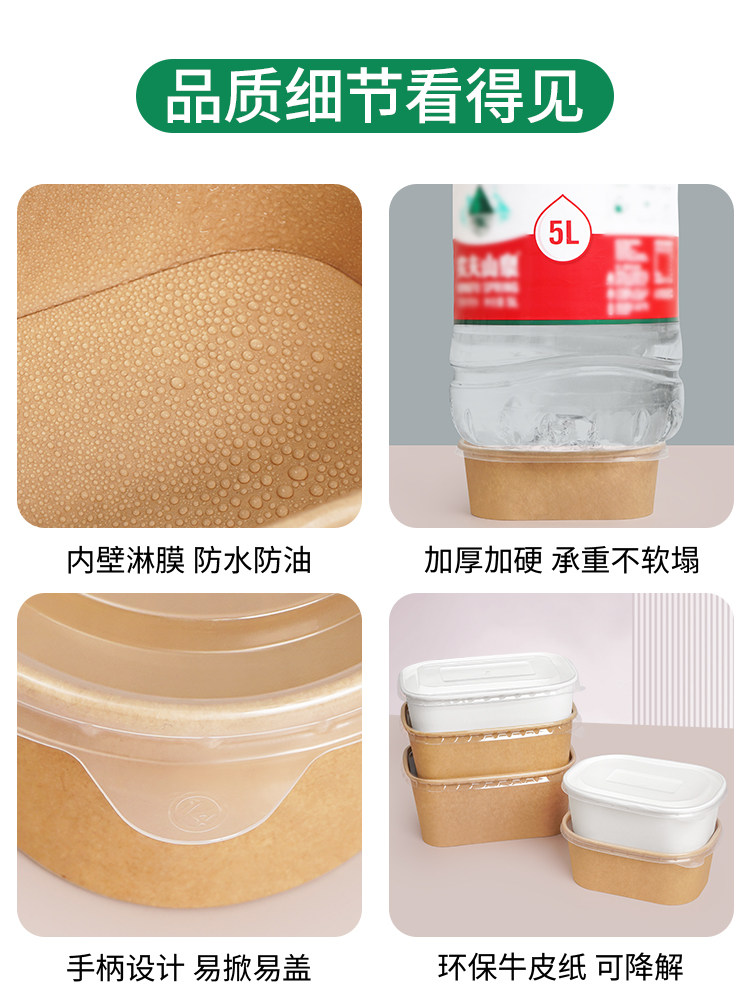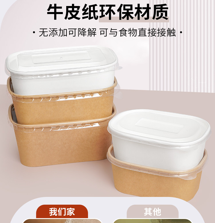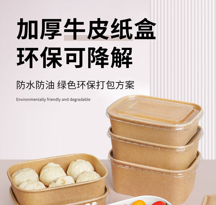 牛皮纸方盒小份菜一次性餐盒外卖打包盒沙拉水果盒长方形环保商用 English | 投诉