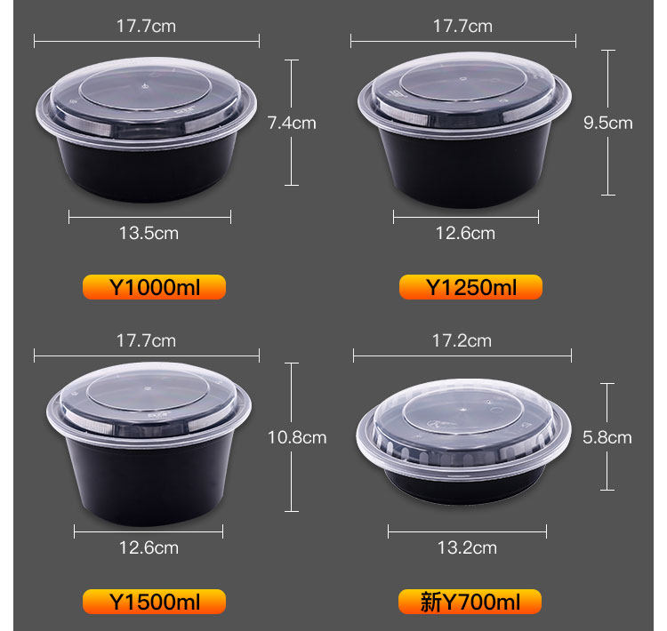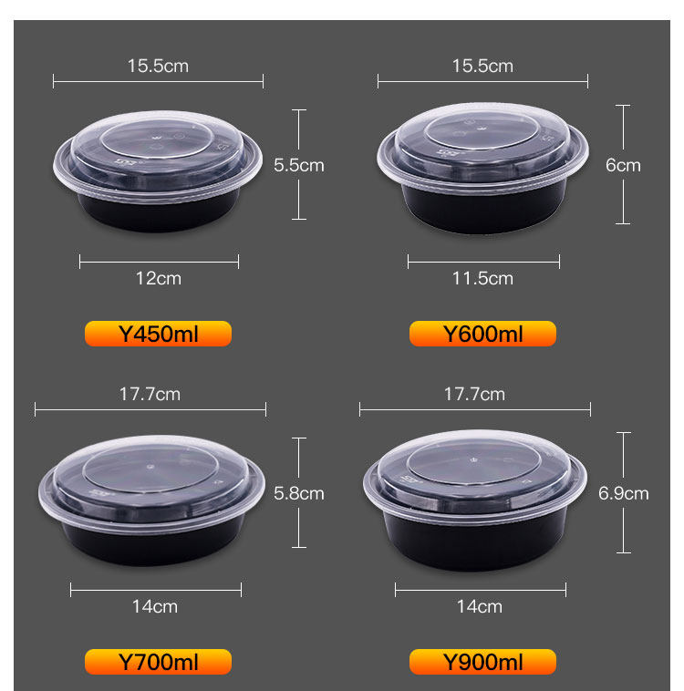 Y450/700/900美式圆形一次性餐盒西式意面盒黑色打包盒外卖刨冰碗 English | 投诉