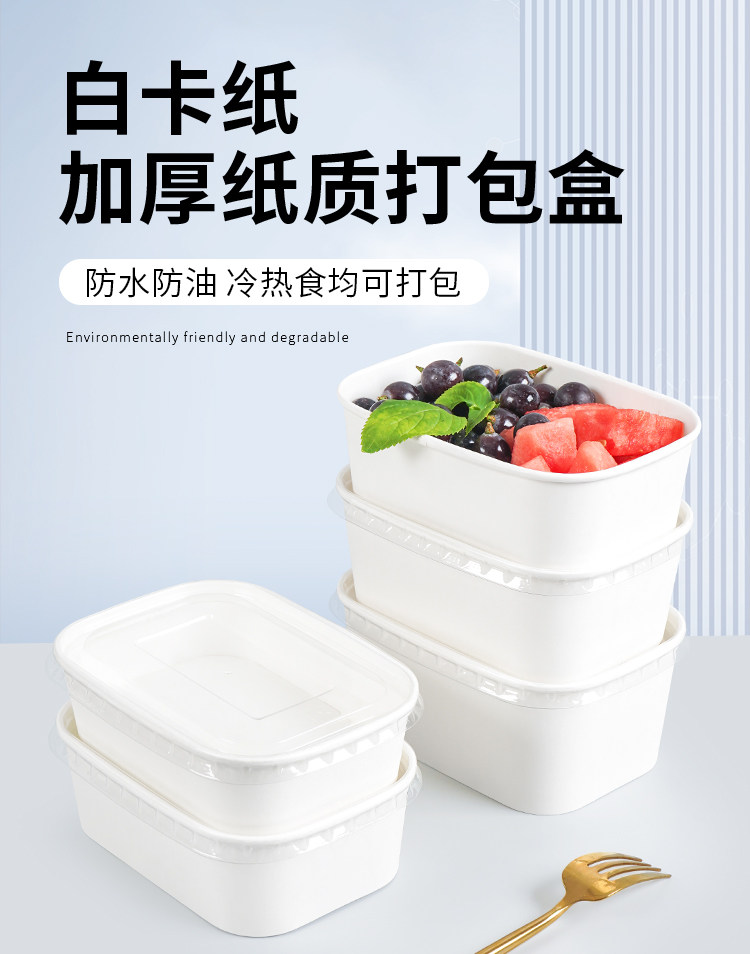 一次性餐盒白色牛皮纸长方形外卖快餐饭盒加厚果切盒子水果打包盒 English | 投诉