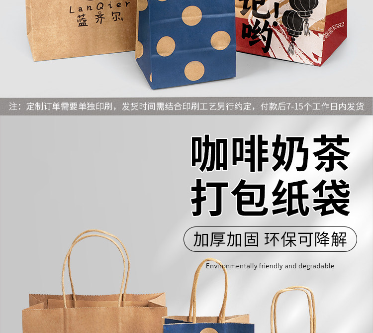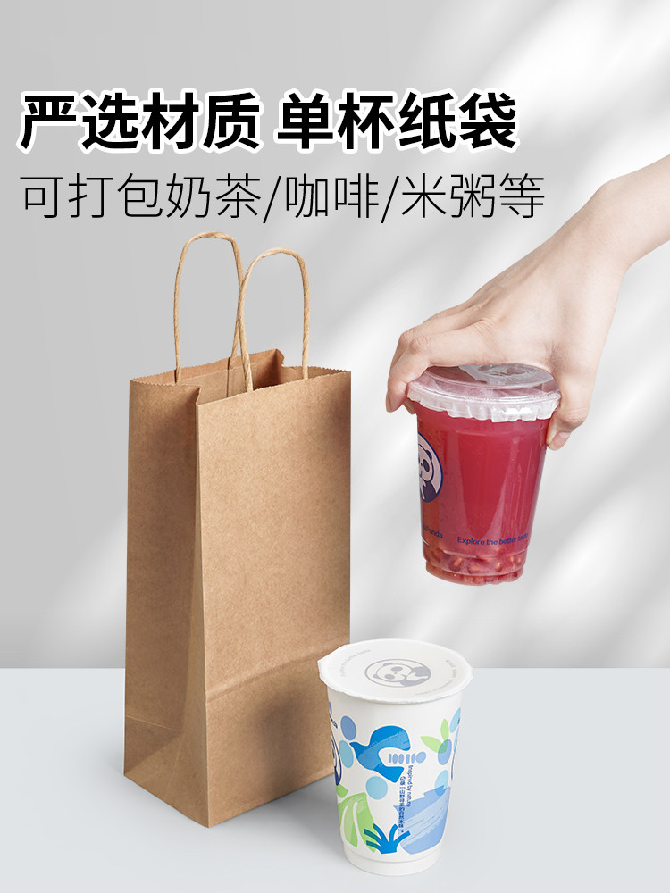 咖啡奶茶打包袋定制外卖牛皮纸袋单杯手提袋餐饮汉堡饮品商用袋子 English | 投诉