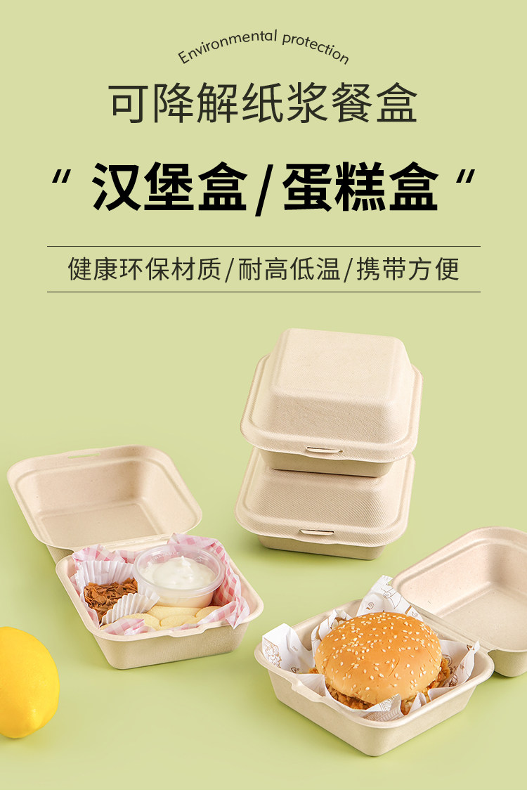 一次性纸浆汉堡盒便当蛋糕打包盒外卖三明治餐盒麻薯甜品包装盒子 English | 投诉