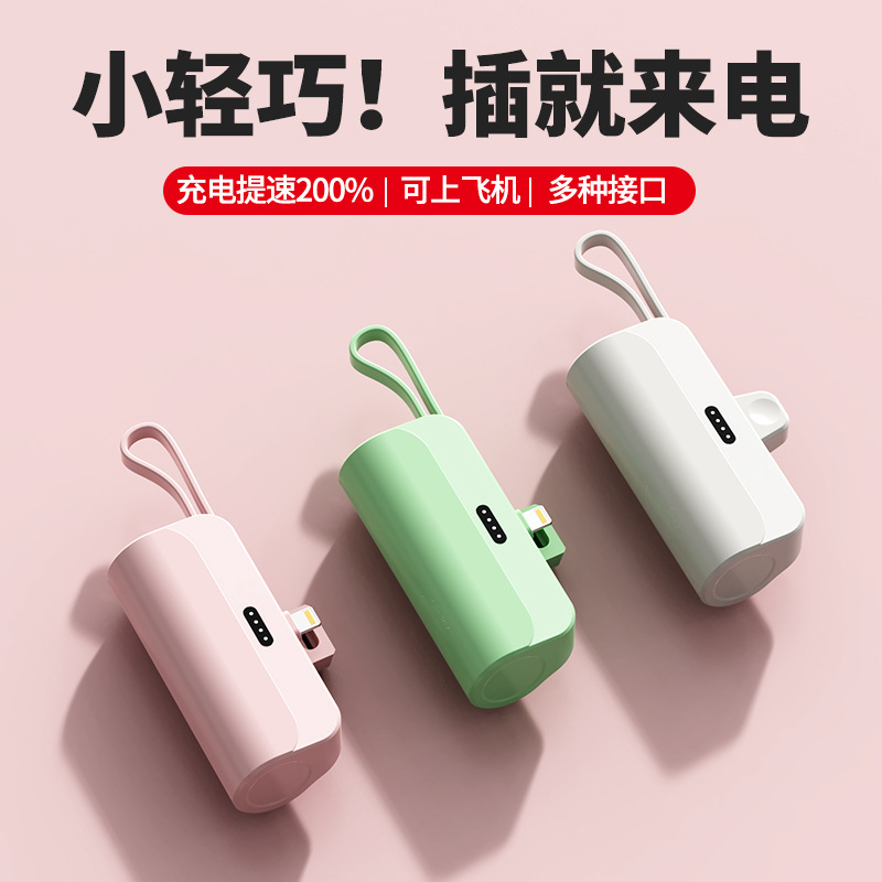 跨境礼品胶囊自带线充电宝批发口袋应急迷你快充小巧便携定