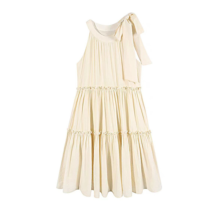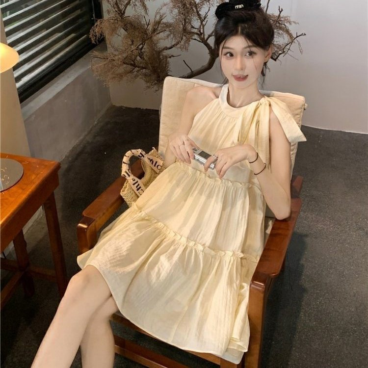 法式温柔风吊带无袖挂脖连衣裙女夏季甜美初恋小个子海边度假短裙
