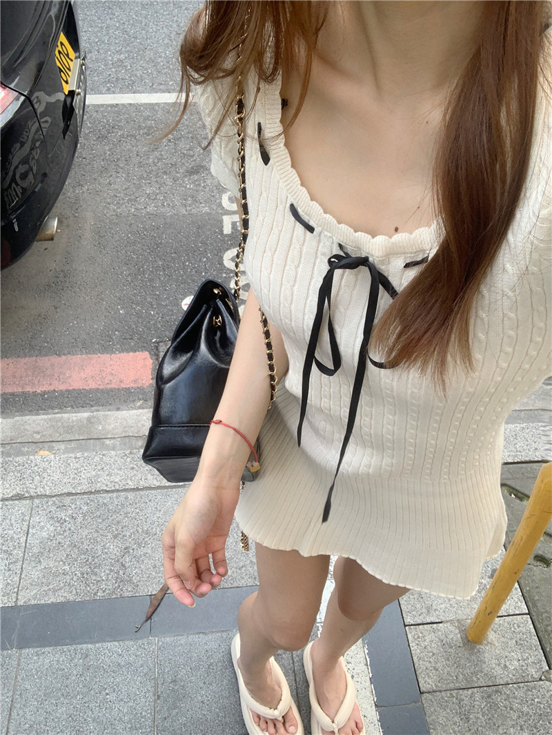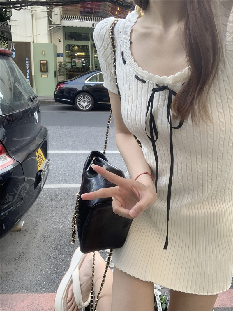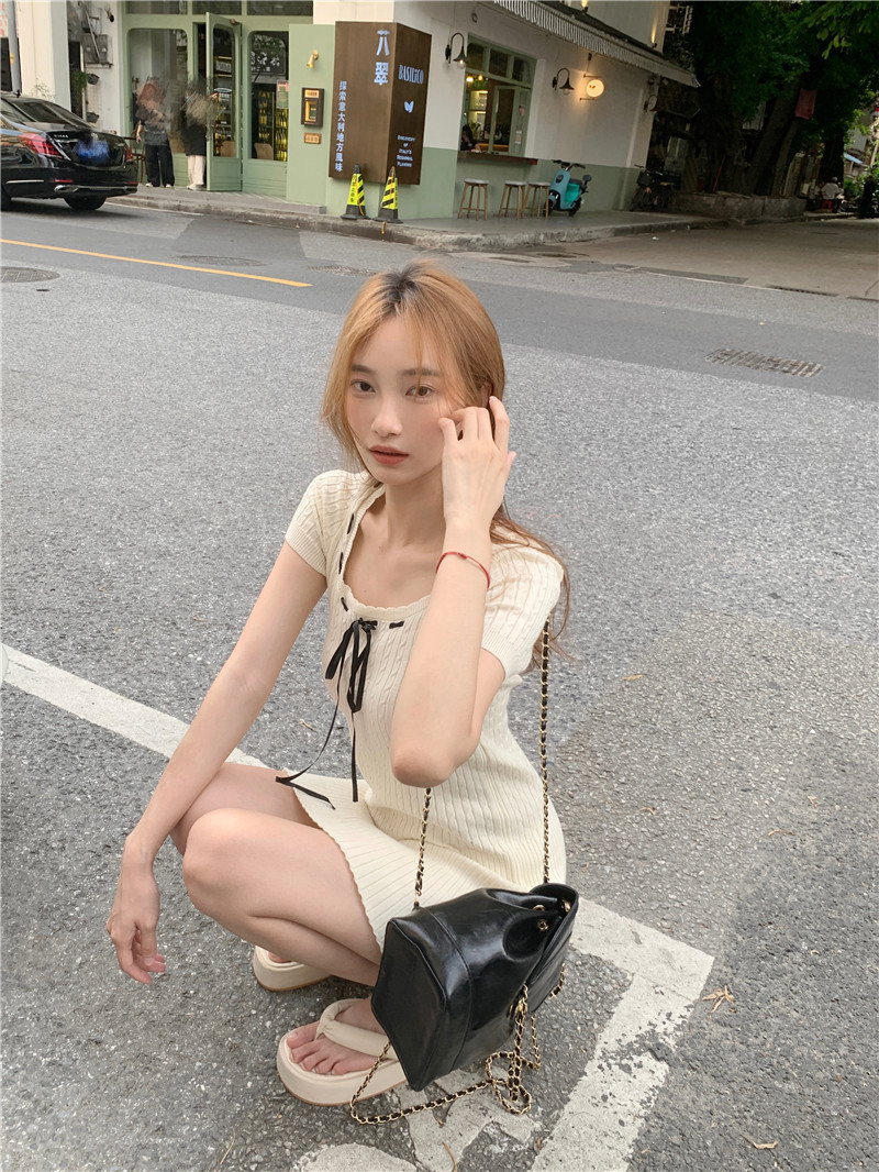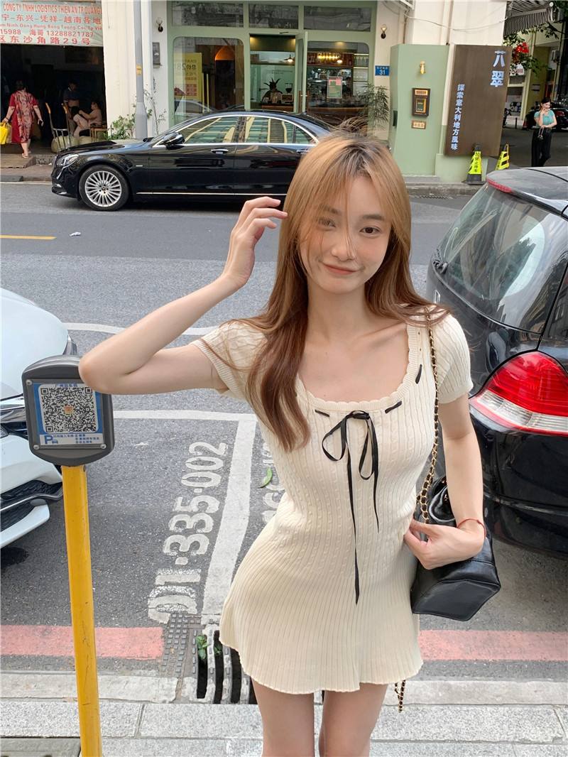 学院风纯欲辣妹冰丝针织绞花连衣裙小个子修身显瘦气质短裙