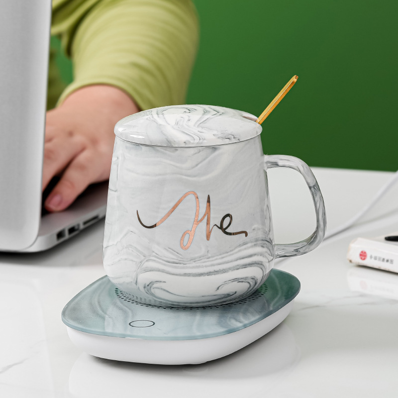 创意大理石纹暖暖杯55度恒温陶瓷杯套装广告员工开业礼品印字LOGO 投诉
