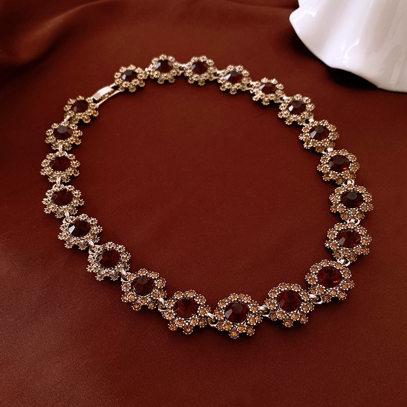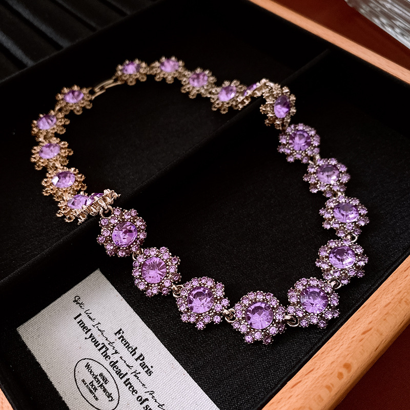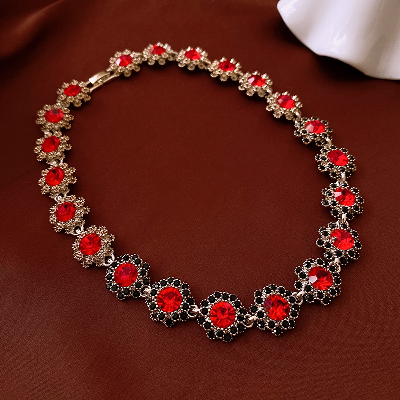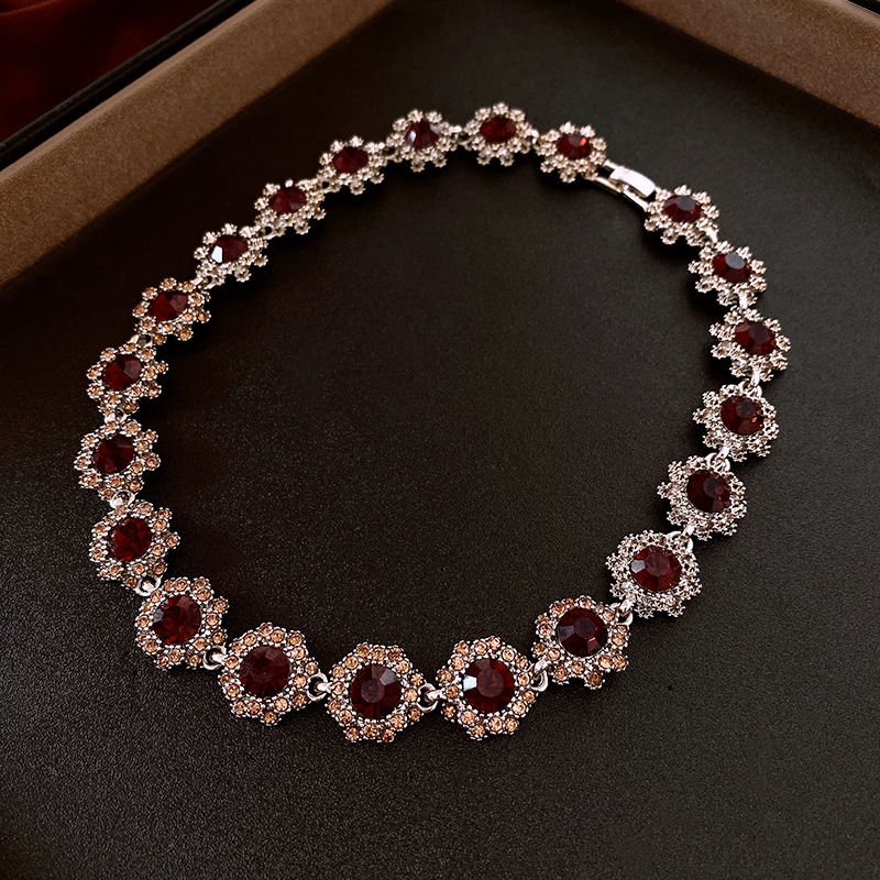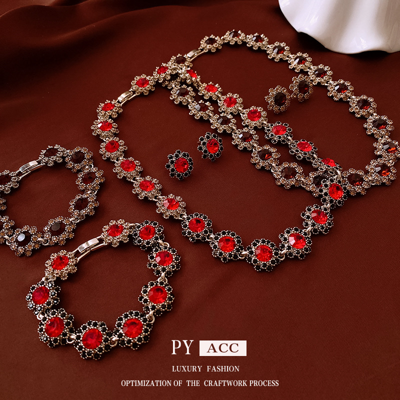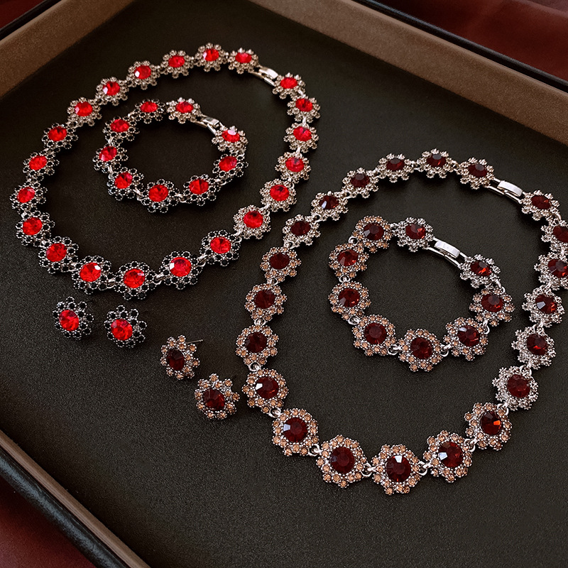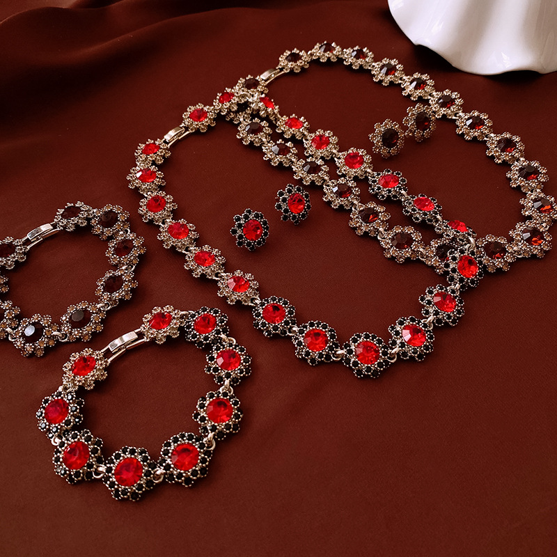 镶钻花朵项链耳环手链首饰套装中古跨境锁骨链轻奢高级感饰品批发