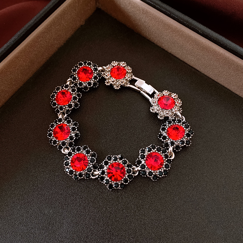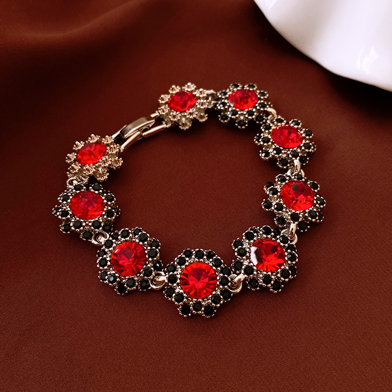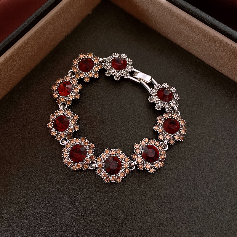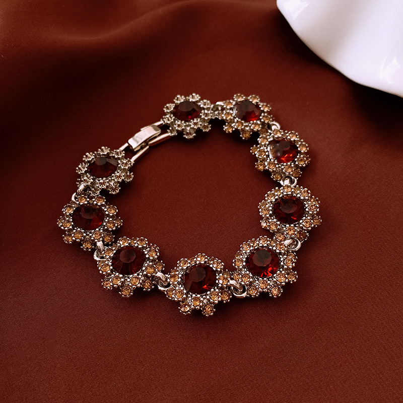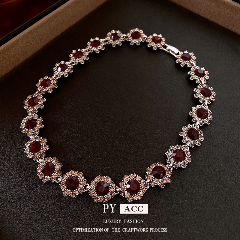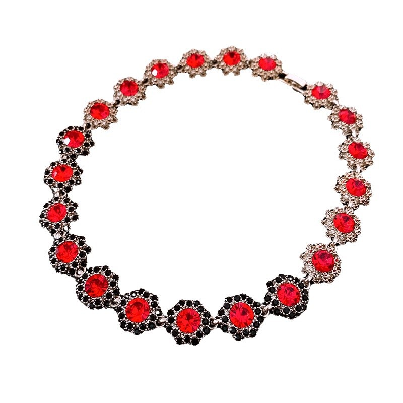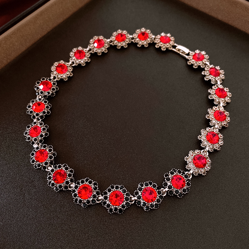 镶钻花朵项链耳环手链首饰套装中古跨境锁骨链轻奢高级感饰品批发