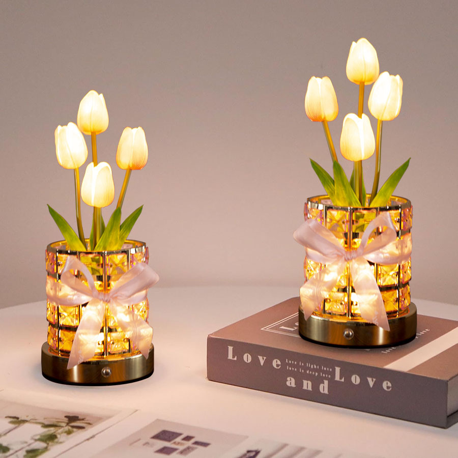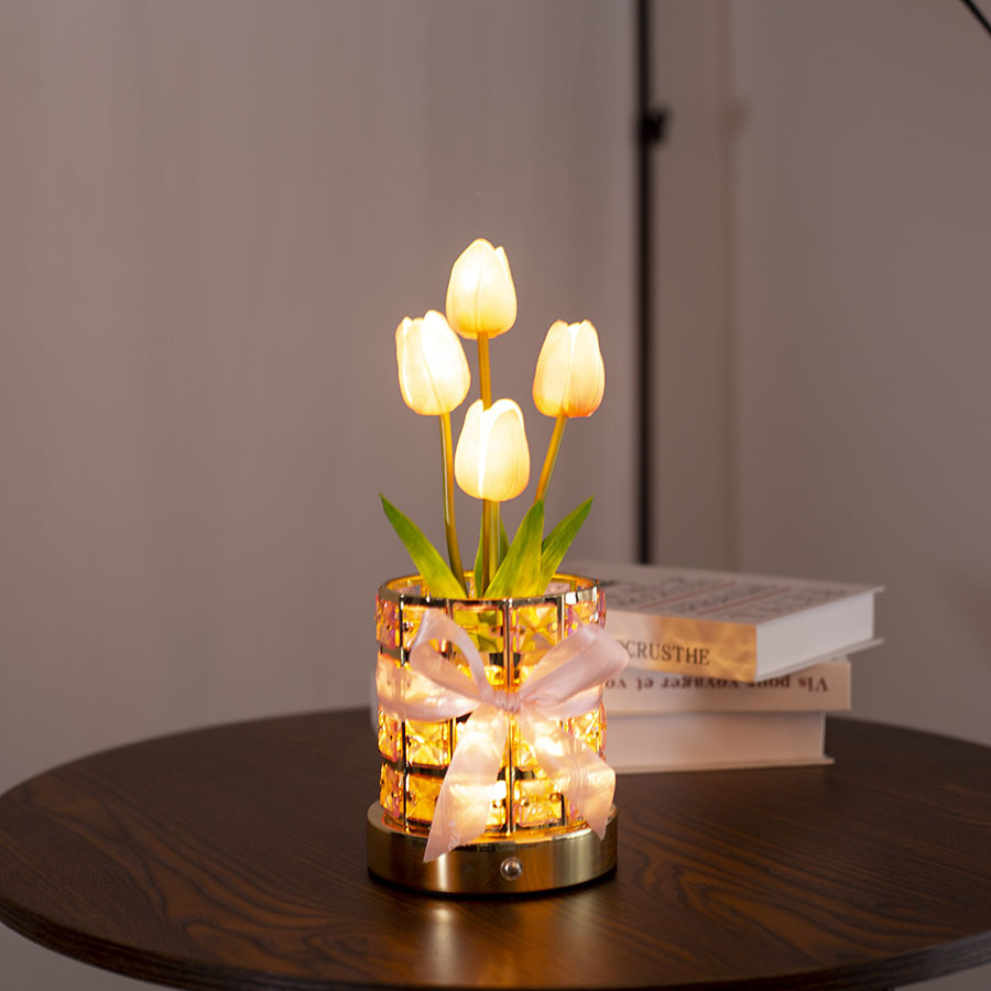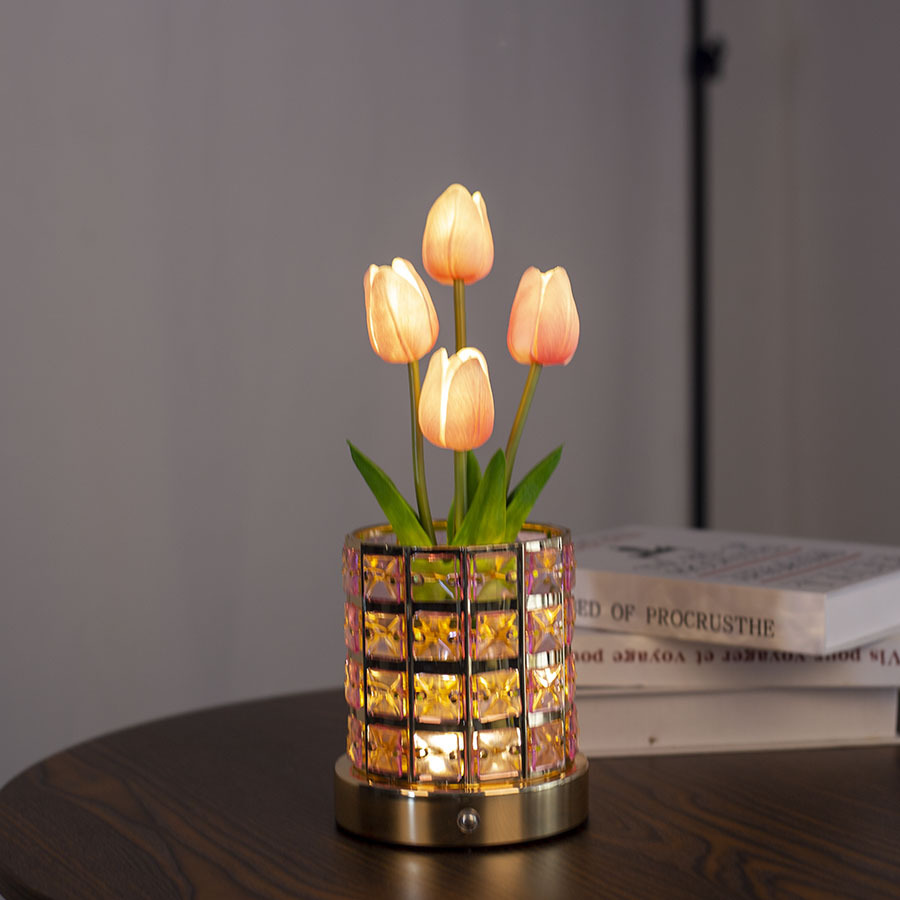 三色光郁金香粉色水晶氛围灯