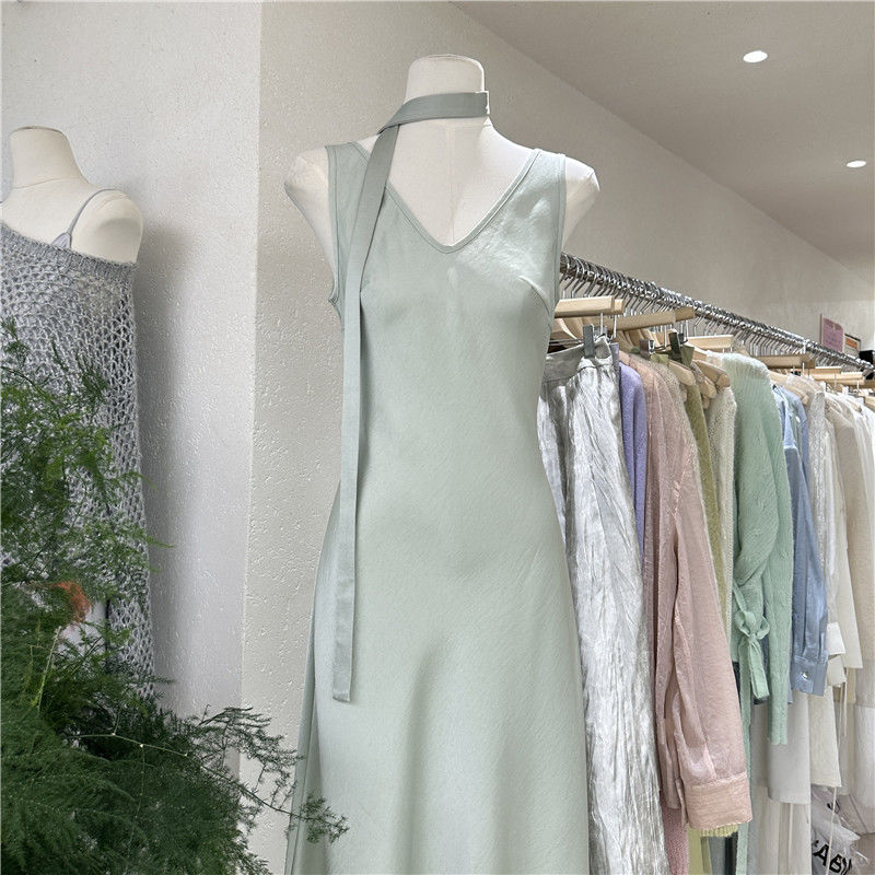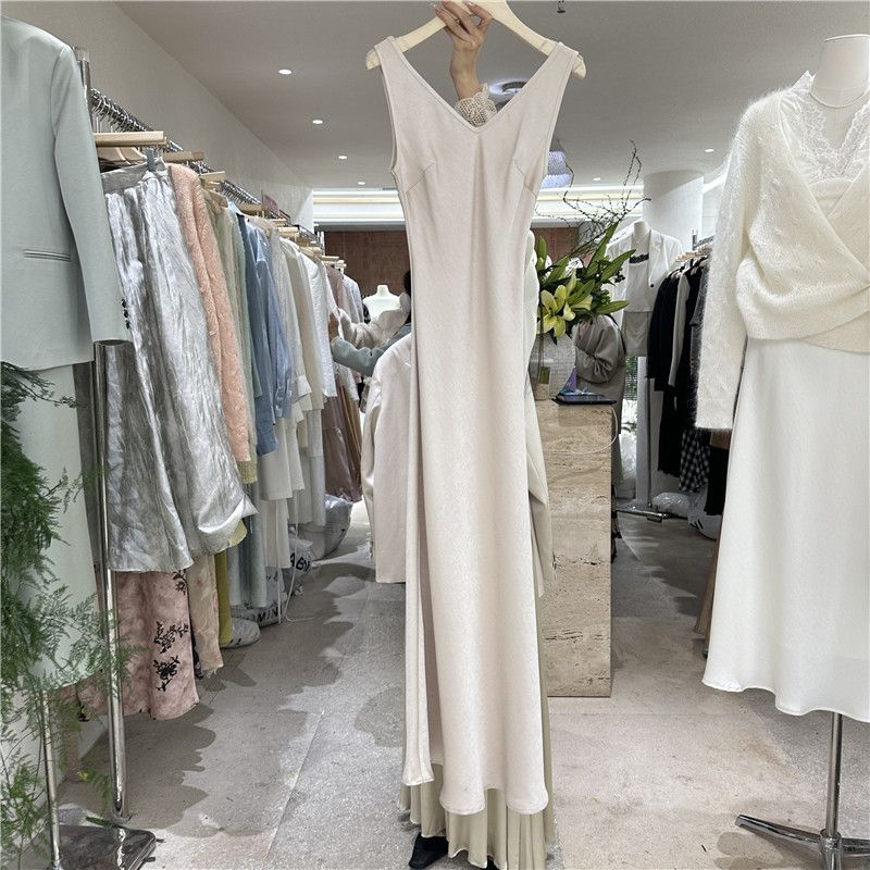 十三行2025夏季高级感法式气质v领纯色背心吊带裙打底鱼尾连衣裙 English | 投诉