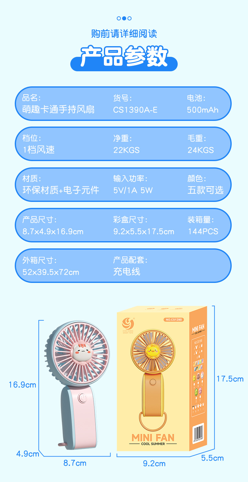 【产品名称】:卡通方把手持风扇