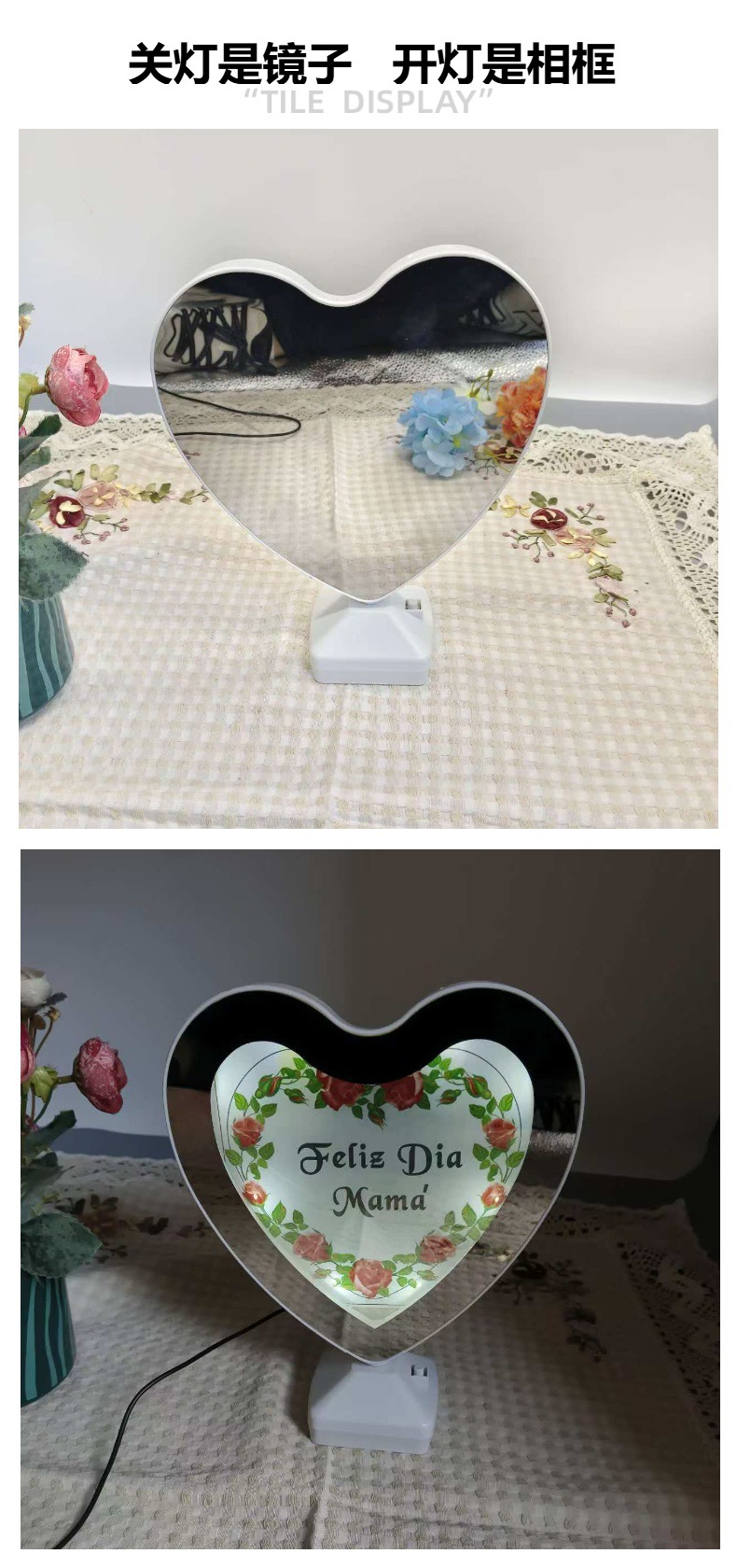 魔镜相框镜子摆台DIY礼物照片两用台式化妆镜婚纱照纪念日礼物 English | 投诉