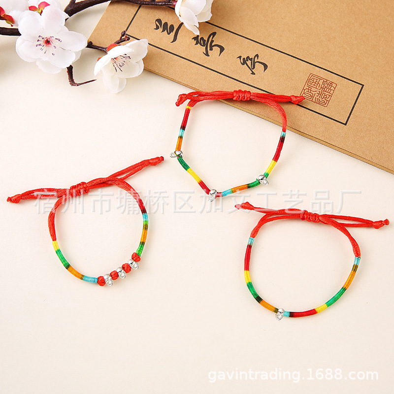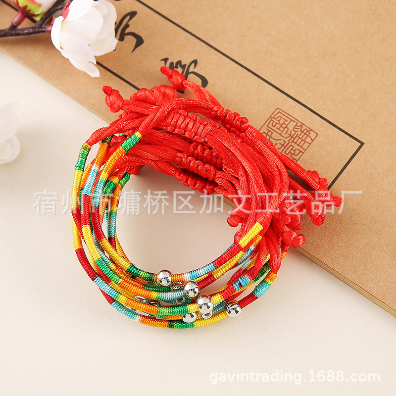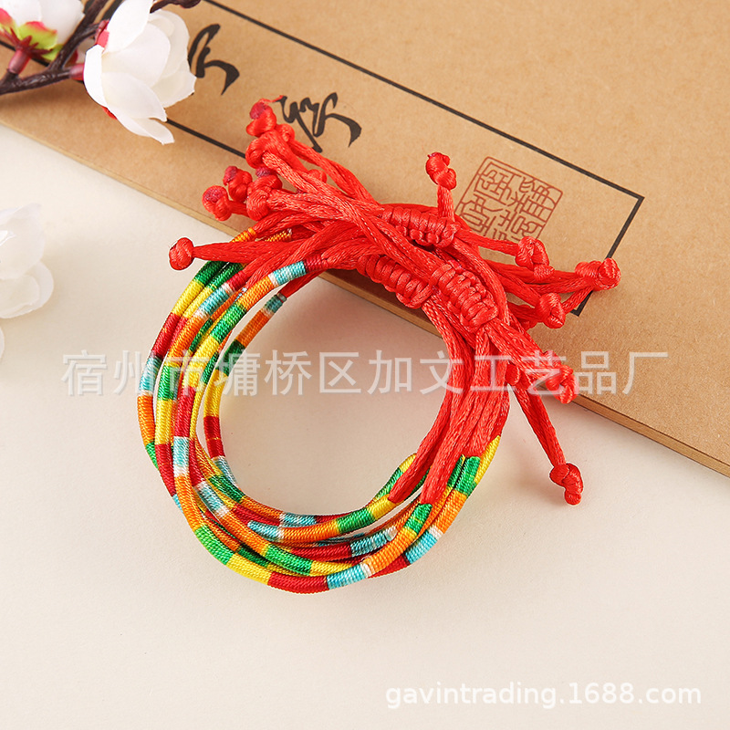 端午节五彩绳地摊热卖景区饰品手链手工编织螺旋龙柱幸运彩色手绳 投诉