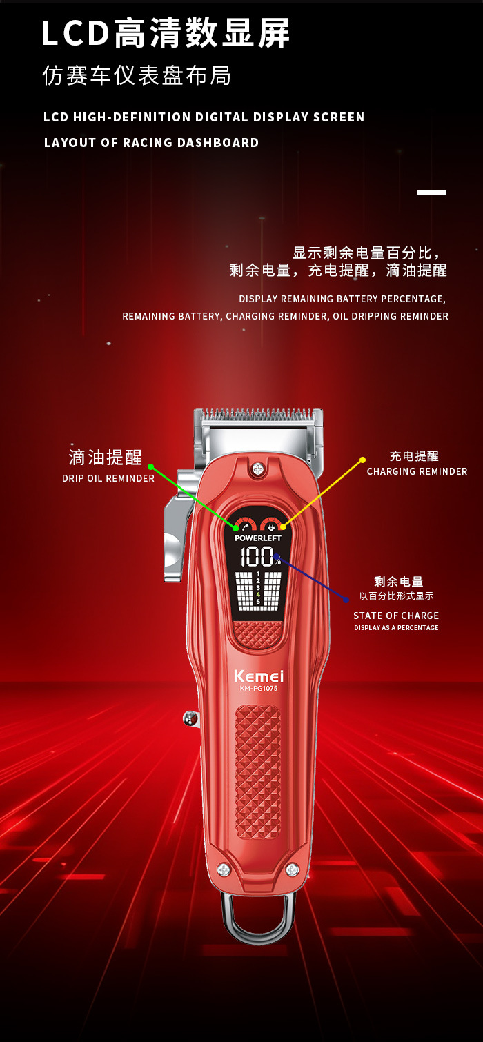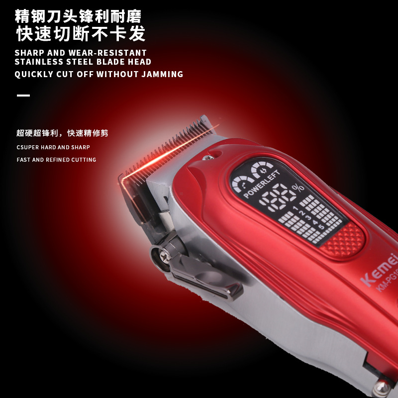 科美KEMEI新款理发器 USB高转速数显理发剪精钢刀头金属剃头推子