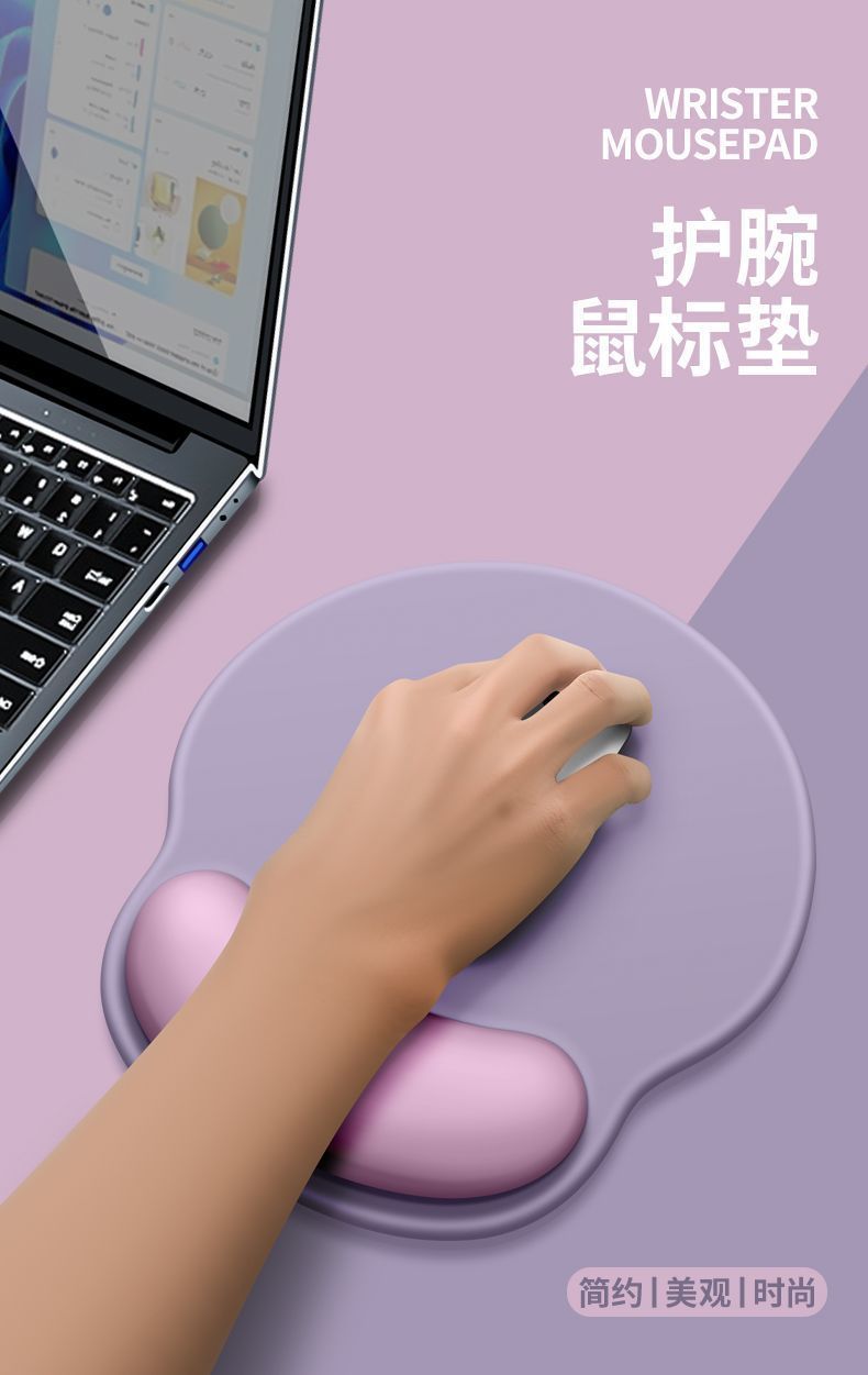 撞色鼠标垫护腕电脑鼠标办公女生滑鼠记忆棉防滑键盘手托耐脏男生