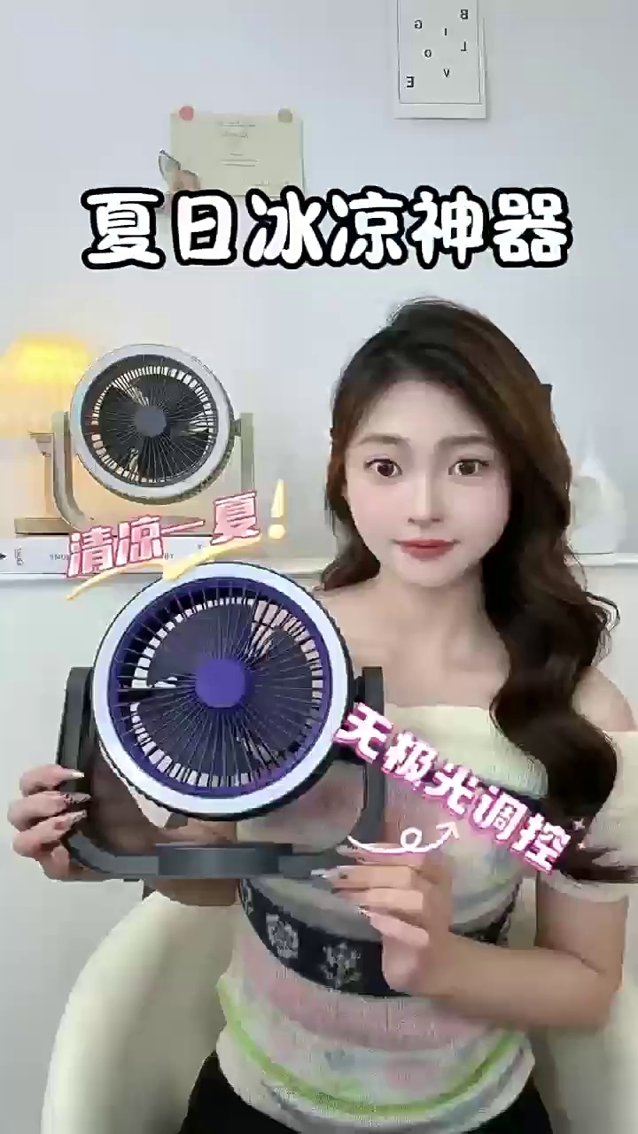 新款空气循环风扇充电挂壁小风扇夜灯桌面台式家用野外露营多功能