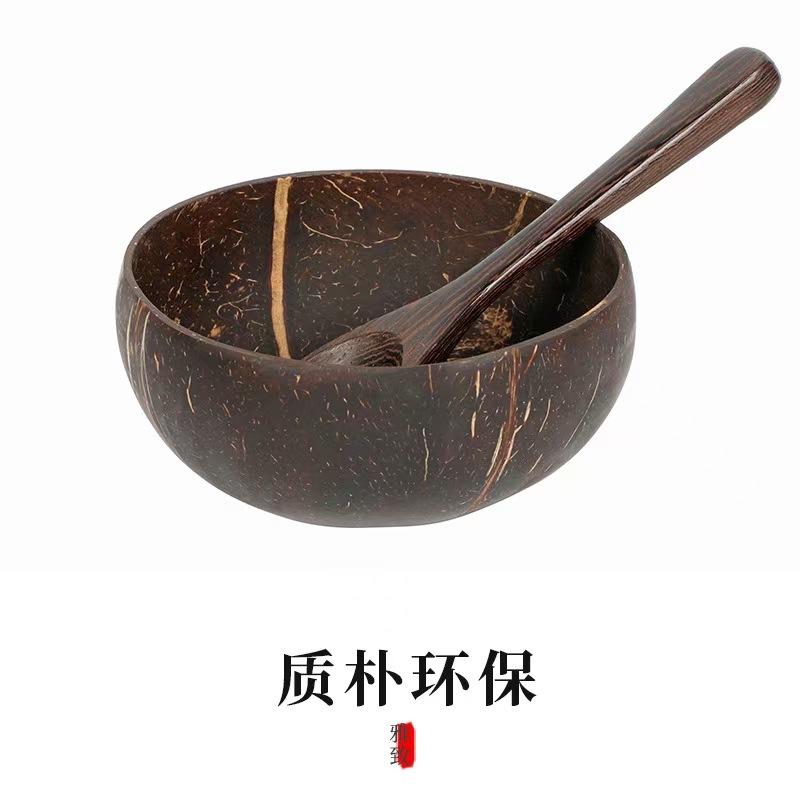 天然椰子壳碗东南亚越南椰壳碗木勺越南老椰子壳水果木质碗鸡翅木