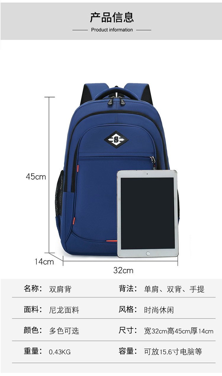 厂家直销2024新款休闲15寸电脑尼龙双肩包时尚撞色大容量学生书包 English | 投诉