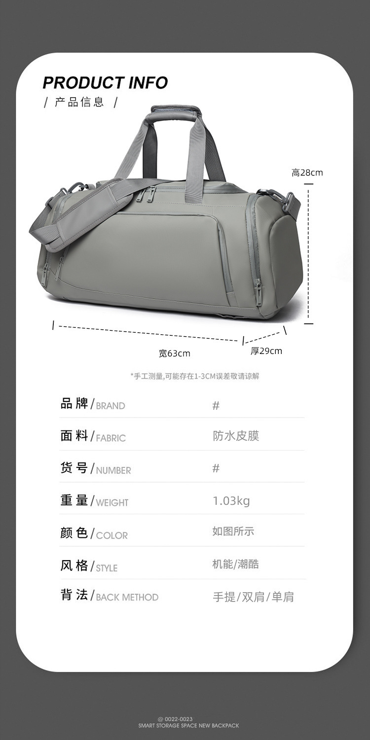 材质: 牛津布 功能: 干湿分离 品牌: 其他 适用性别: 男 里料质地: 牛津布 图案: 纯色 风格: 跨境风潮 流行元素: 其他 颜色: 黑色,灰色 上市年份季节: 2024年秋季 重量: 0.6 kg/件