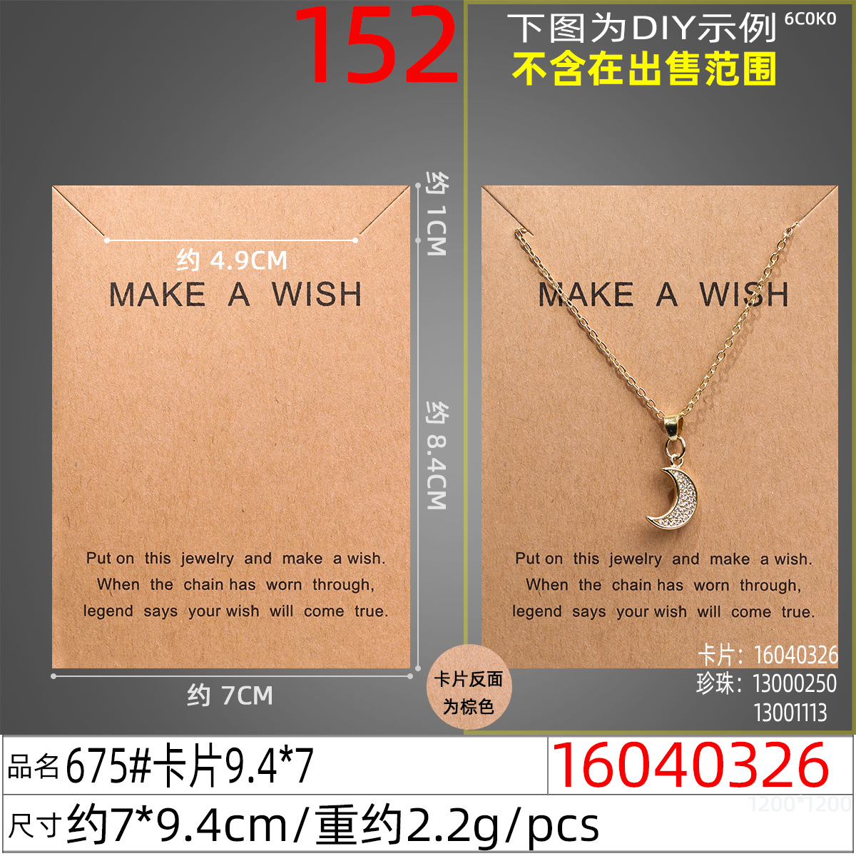 跨境7*8.4cm make a wish项链卡片祝福幸运友谊首饰品手链卡纸批