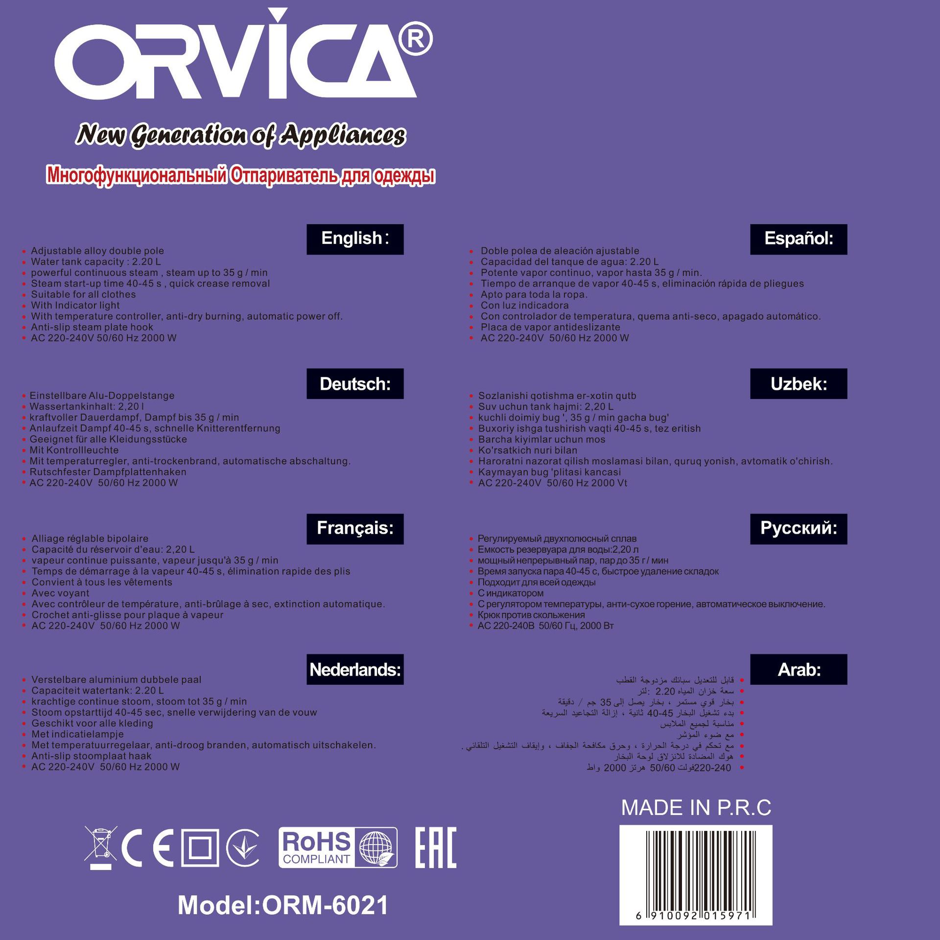 ◎Steam start-up time 40-45s,quick crease removal.