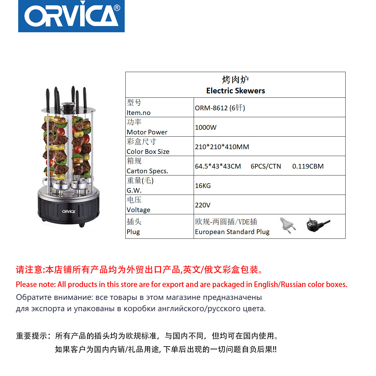 ORVICA跨境外贸爆款烧烤炉家用户外转烤串机全自动旋烤牛羊肉串机 投诉