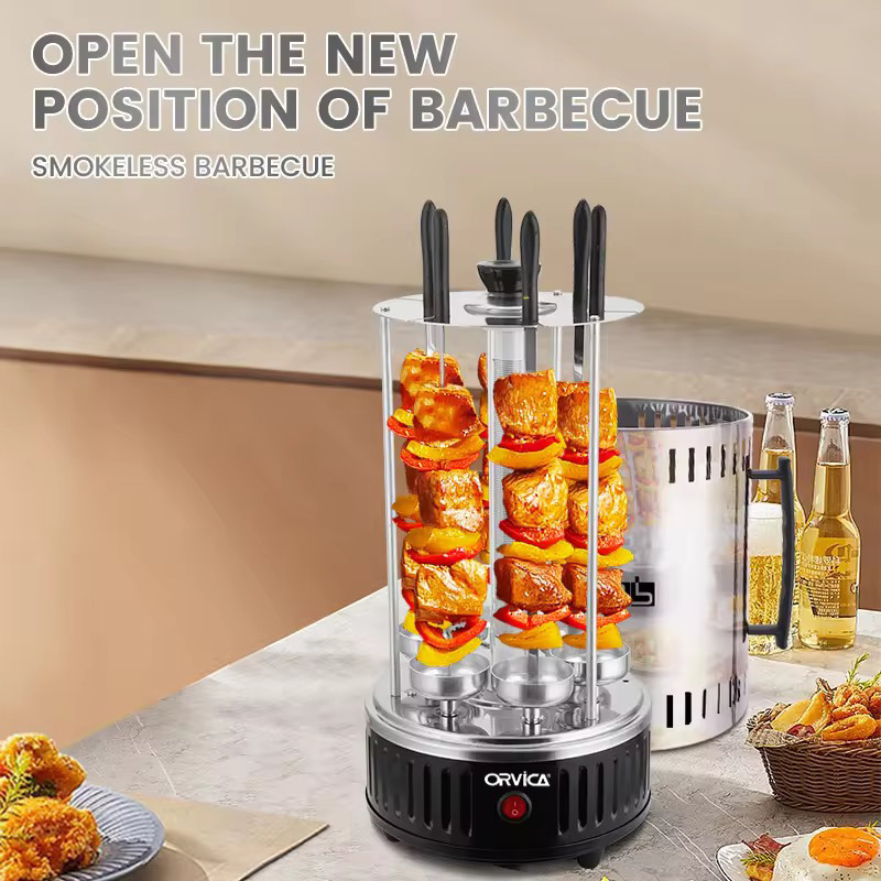 ORVICA跨境外贸爆款烧烤炉家用户外转烤串机全自动旋烤牛羊肉串机