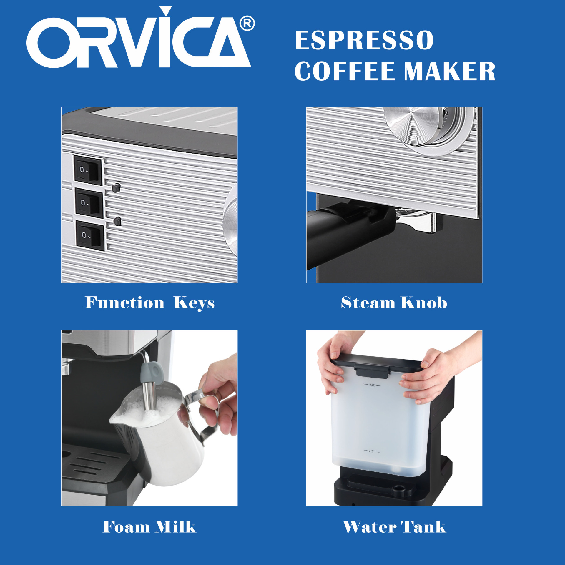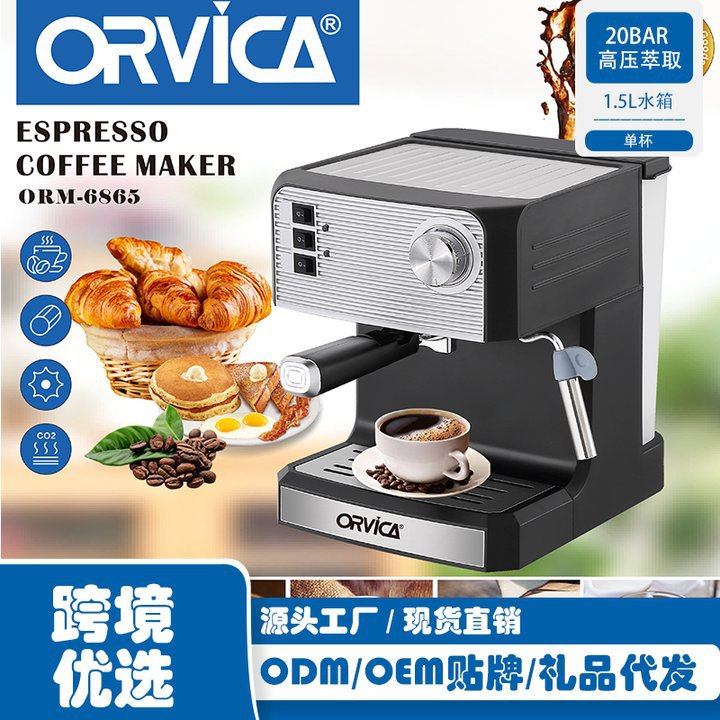 ORVICA跨境专供意式咖啡机办公室家庭高压蒸汽小型半全自动咖啡机