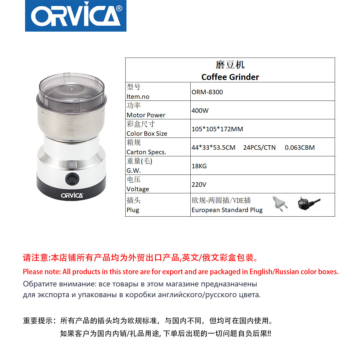 ORVICA跨境电动调料磨豆机便携咖啡豆打粉机器 投诉