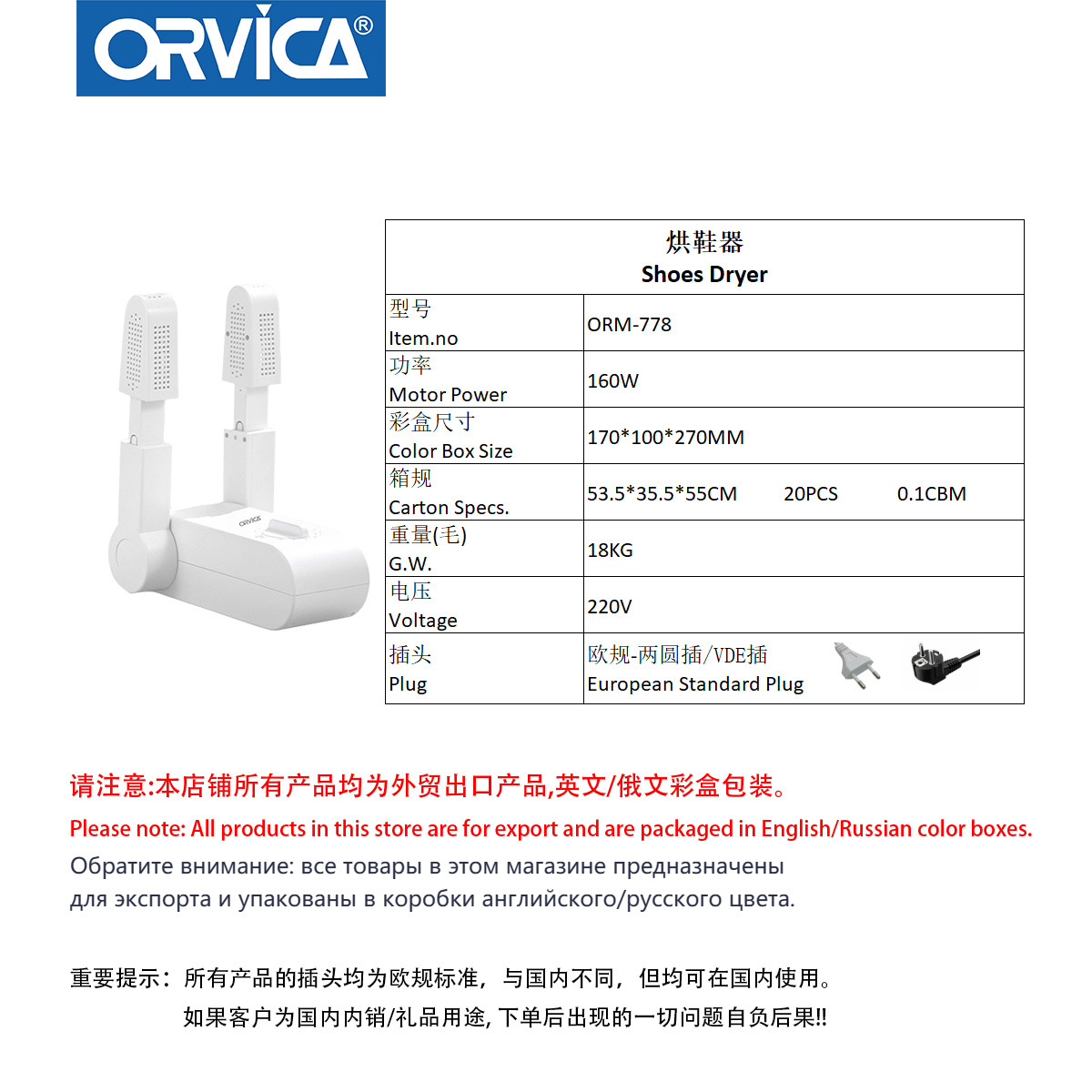 ORVICA跨境烘鞋器杀菌除臭儿童成人通用干湿两用速干除臭干鞋机 投诉