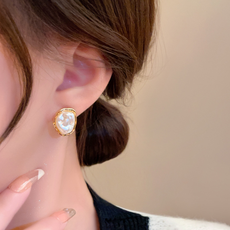 异形巴洛克珍珠耳环女轻奢高级感独特设计耳钉时尚气质百搭耳饰品