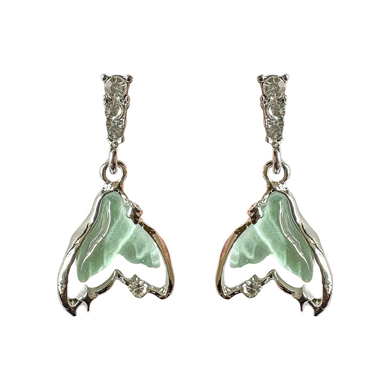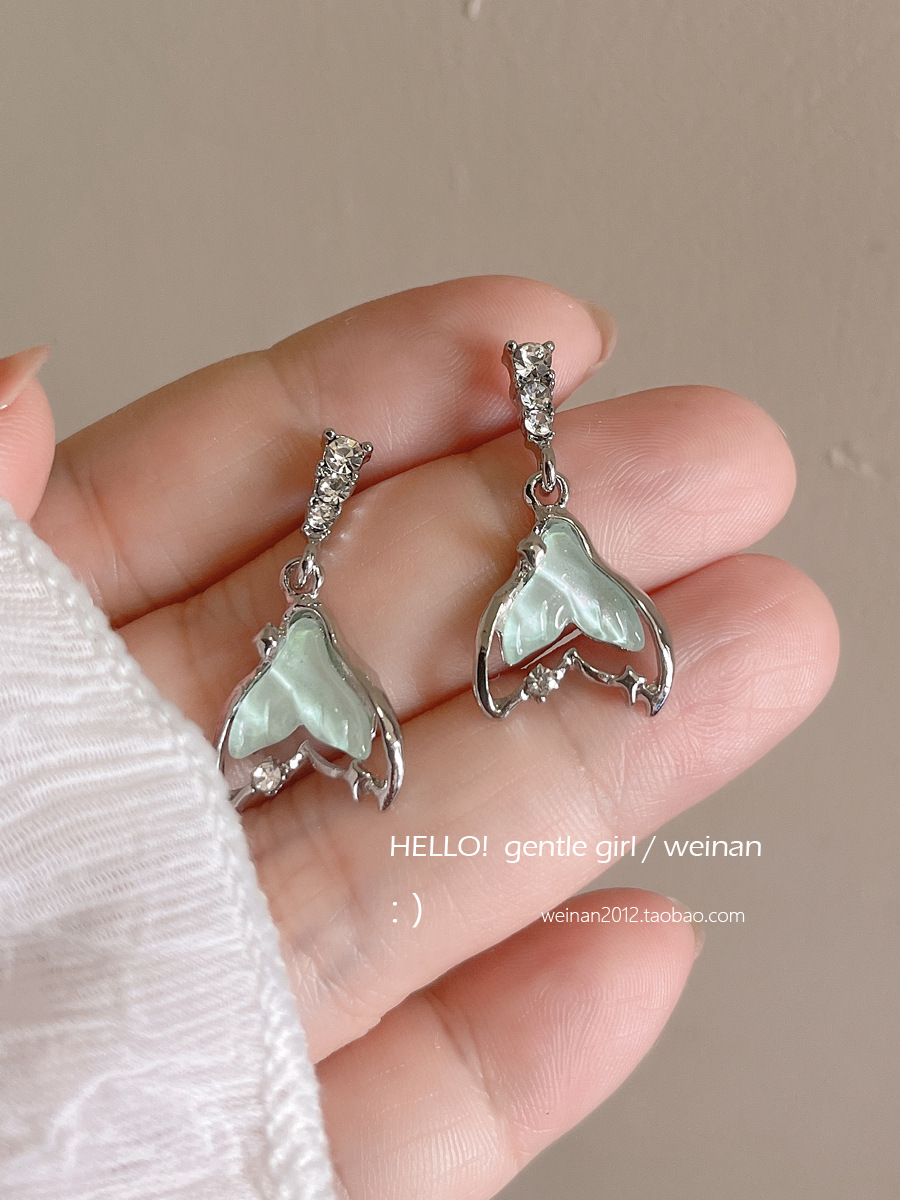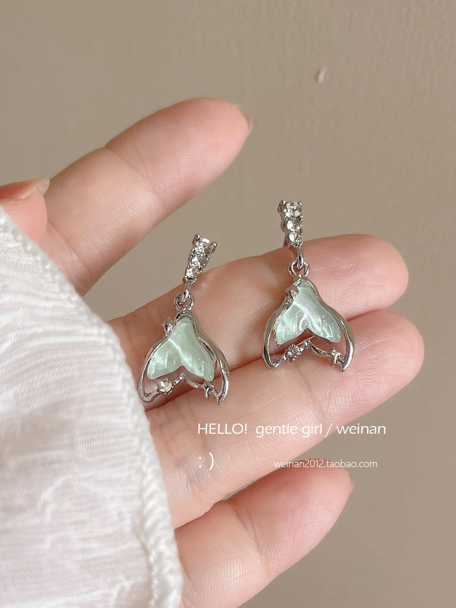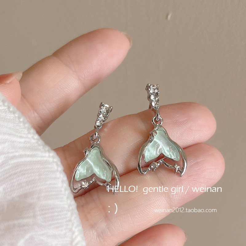 甜酷少女感薄荷果冻鱼尾耳环高级感小众设计时尚s925银针早春耳饰