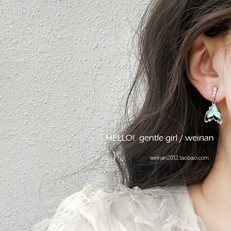 甜酷少女感薄荷果冻鱼尾耳环高级感小众设计时尚s925银针早春耳饰 投诉