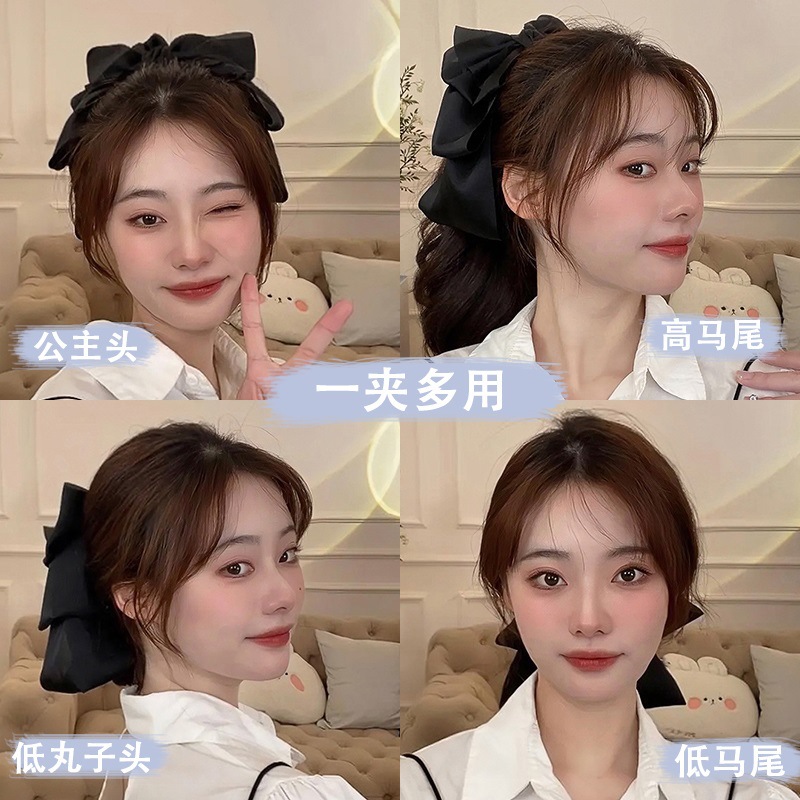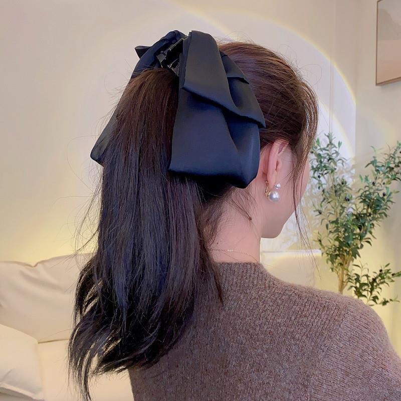 高级显气质黑色缎面蝴蝶结发夹2025新款女后脑勺抓夹发卡早春头饰