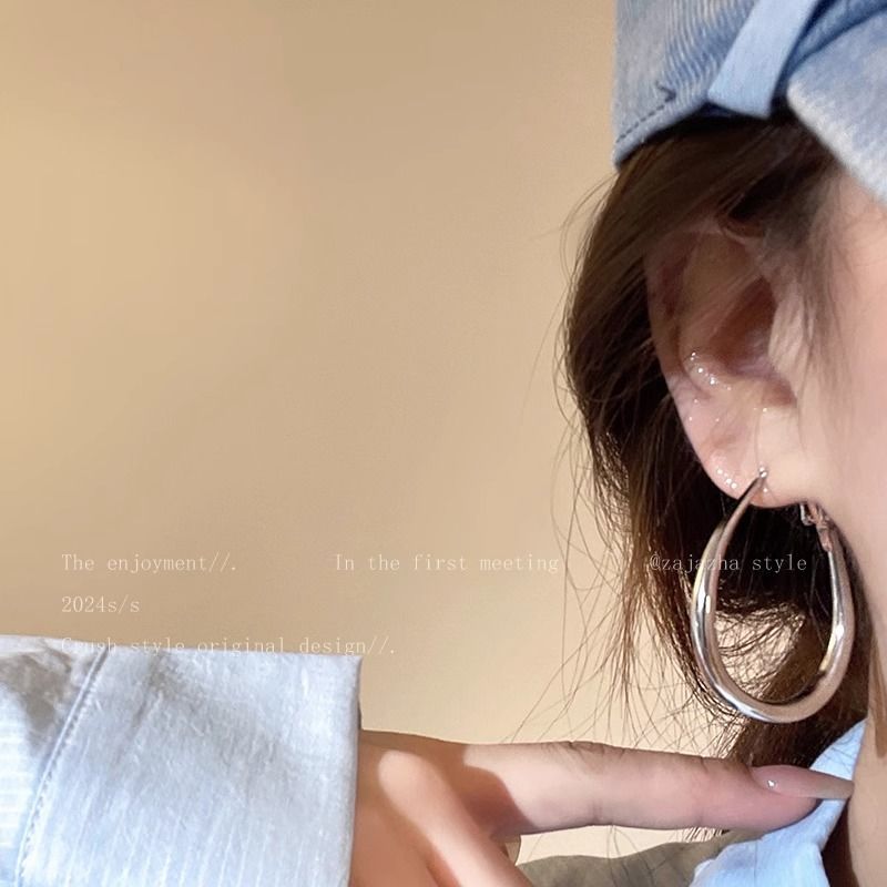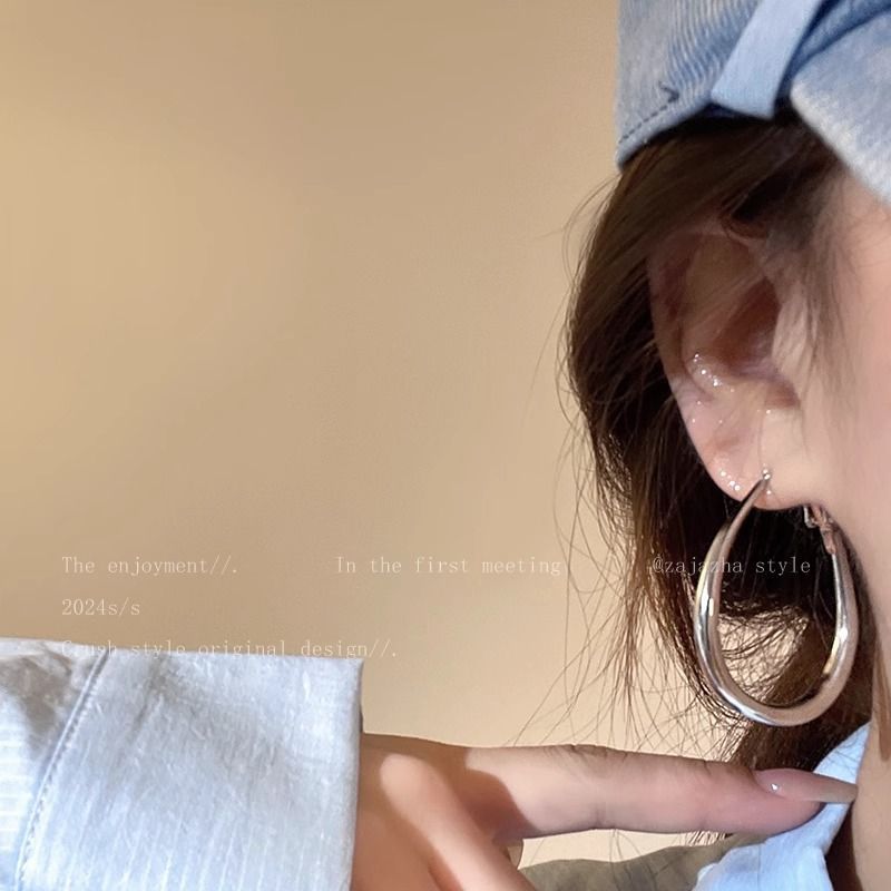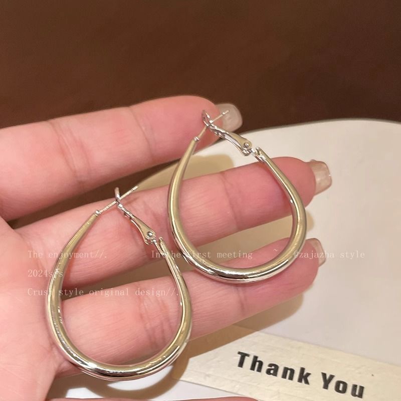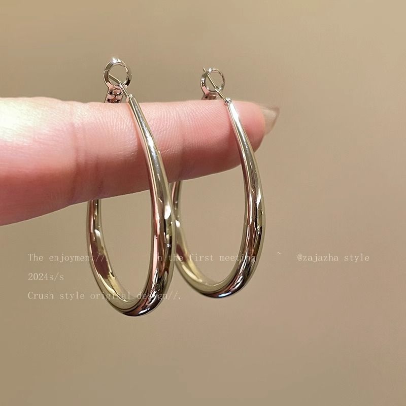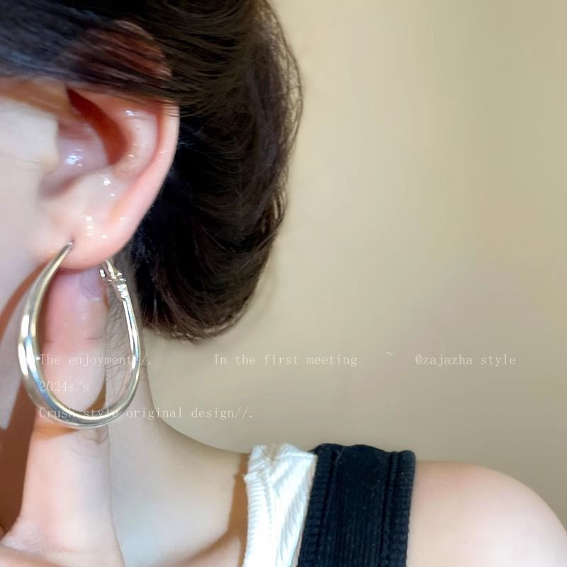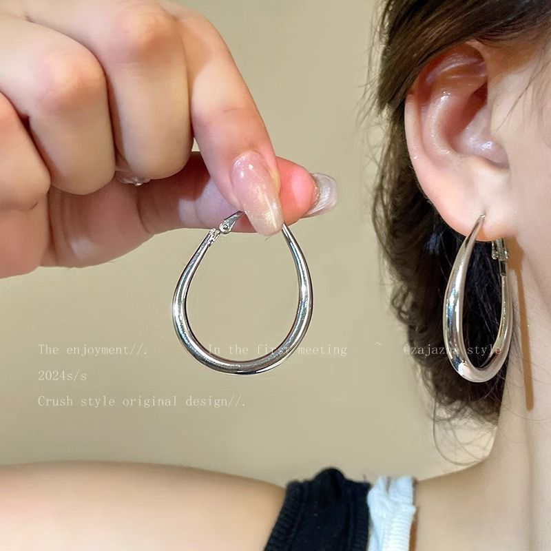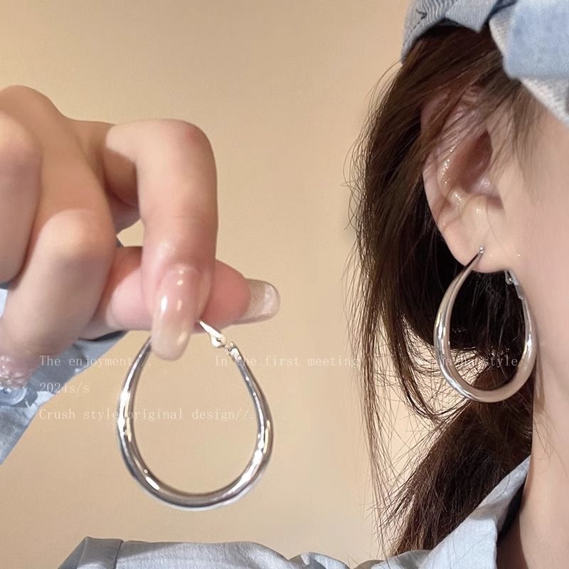 小众简约水滴素圈耳环女冷淡风夸张大耳圈轻奢高级感百搭圈圈耳饰