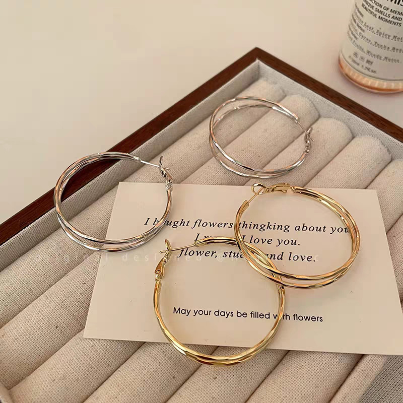 银色双层圆圈耳环(4cm) s925银针 ¥0 1819对可售