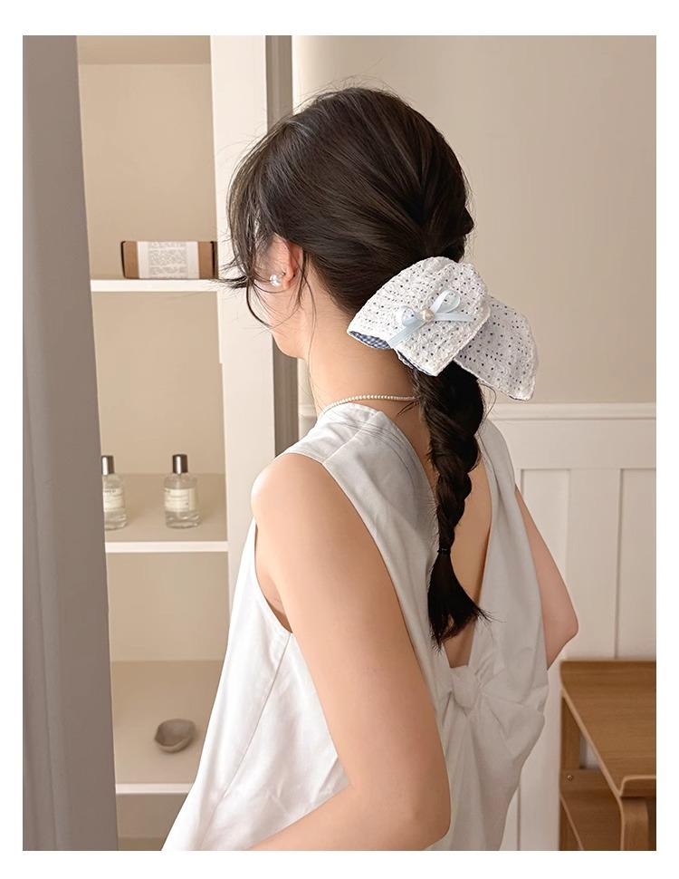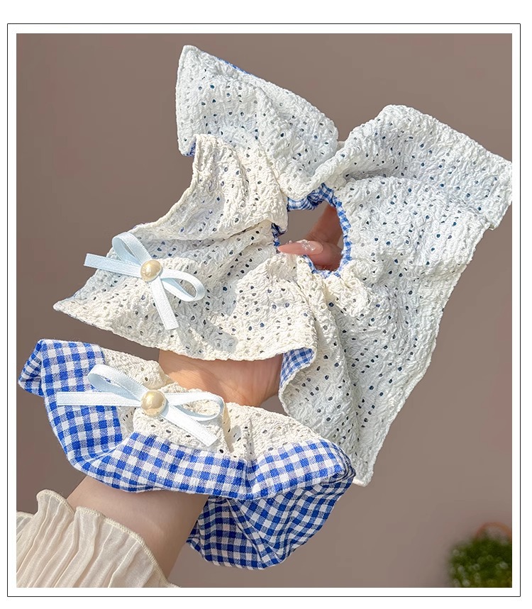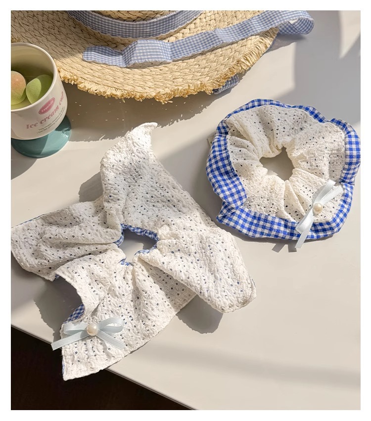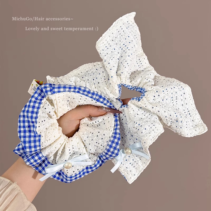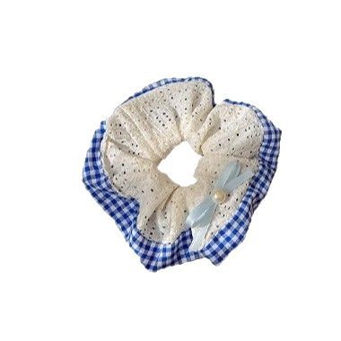 韩系蓝色格子方巾大肠发圈女高级感扎头发绳丸子头低马尾头绳发饰 投诉