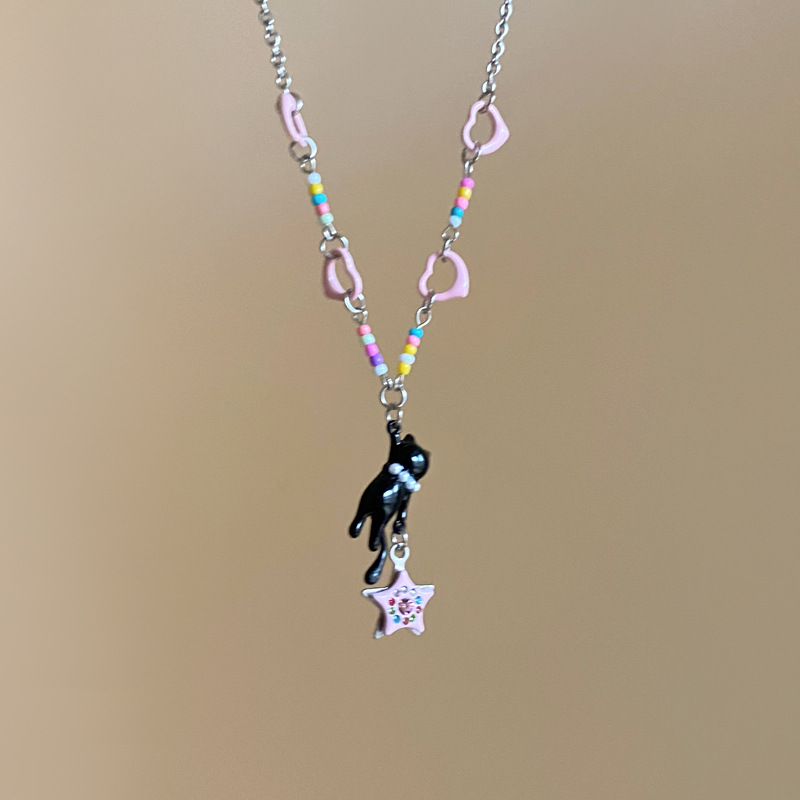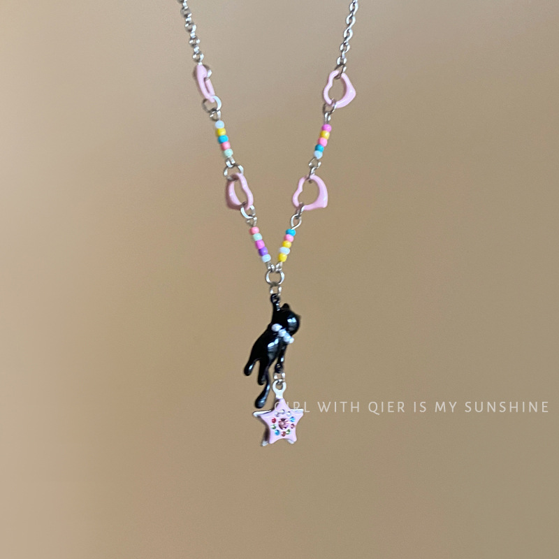 黑猫流星彩色爱心串珠项链女可爱气质百搭锁骨链小众设计甜酷颈链