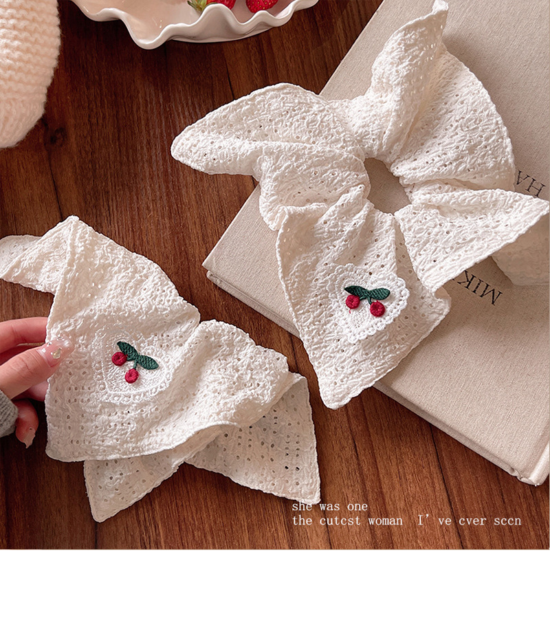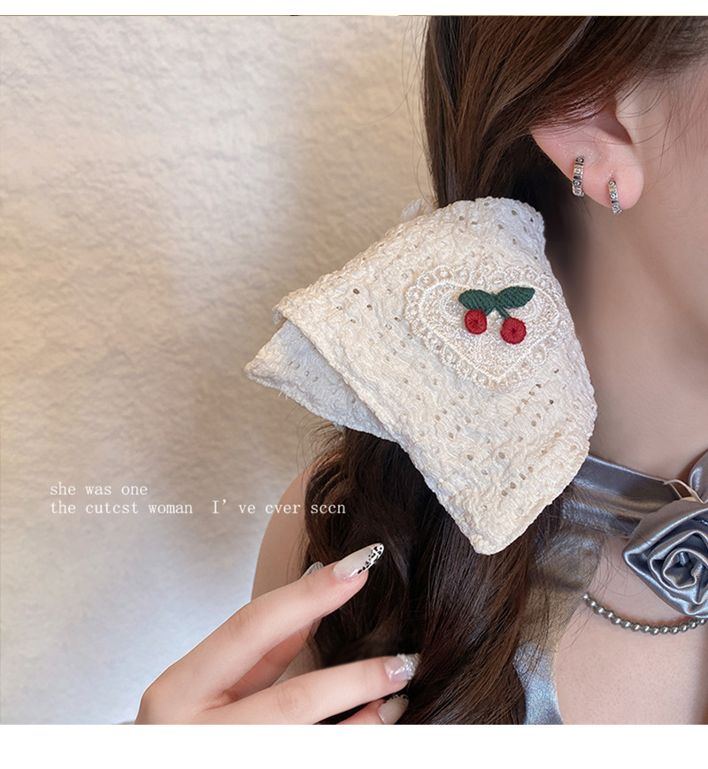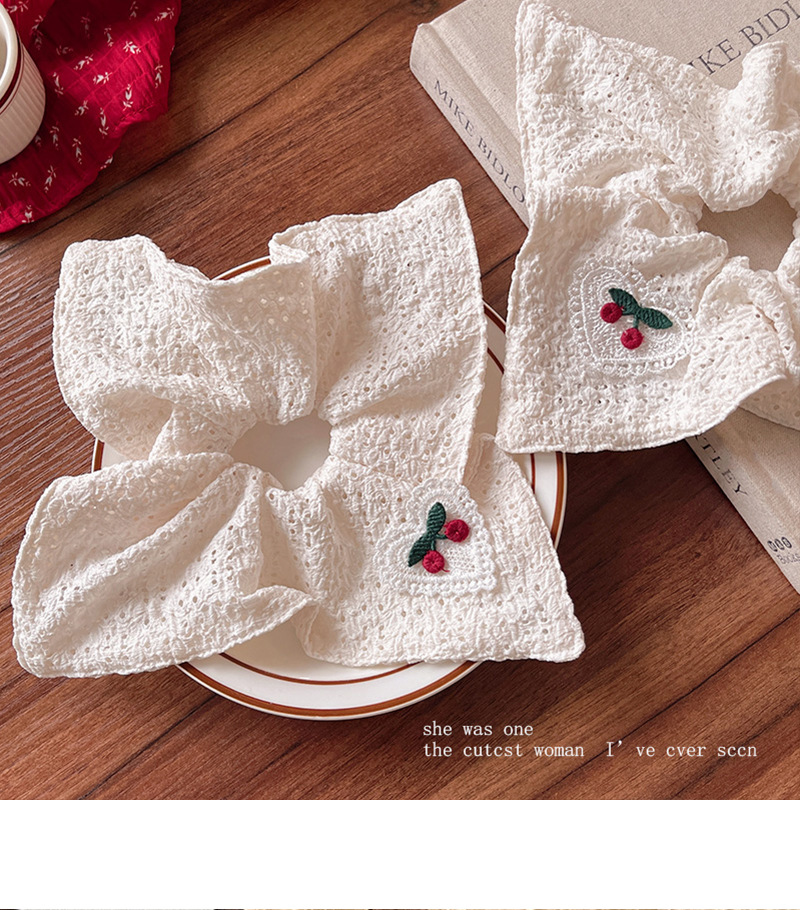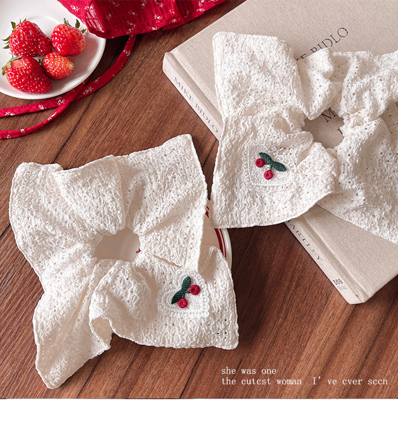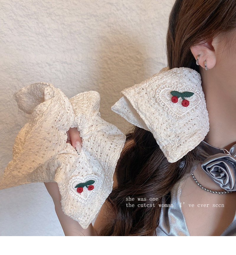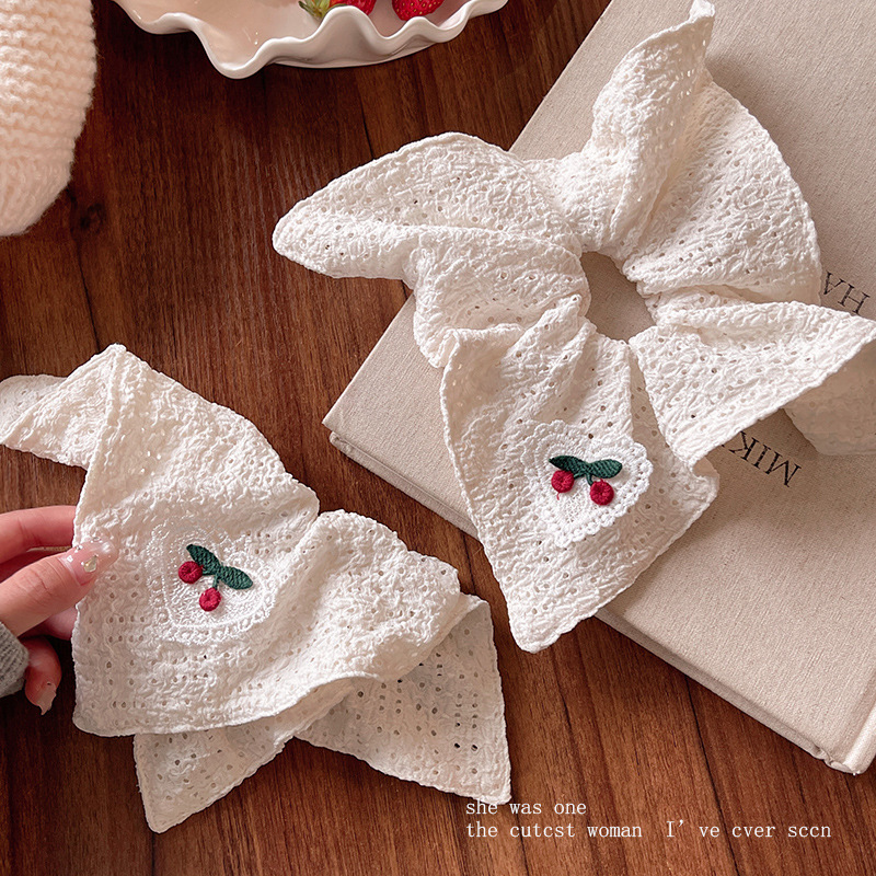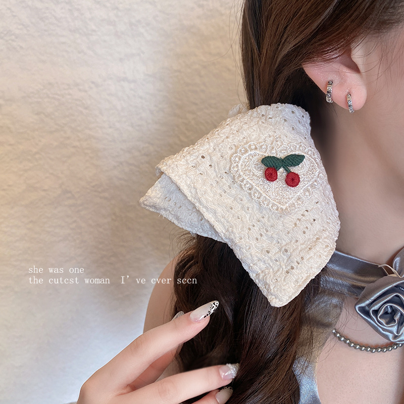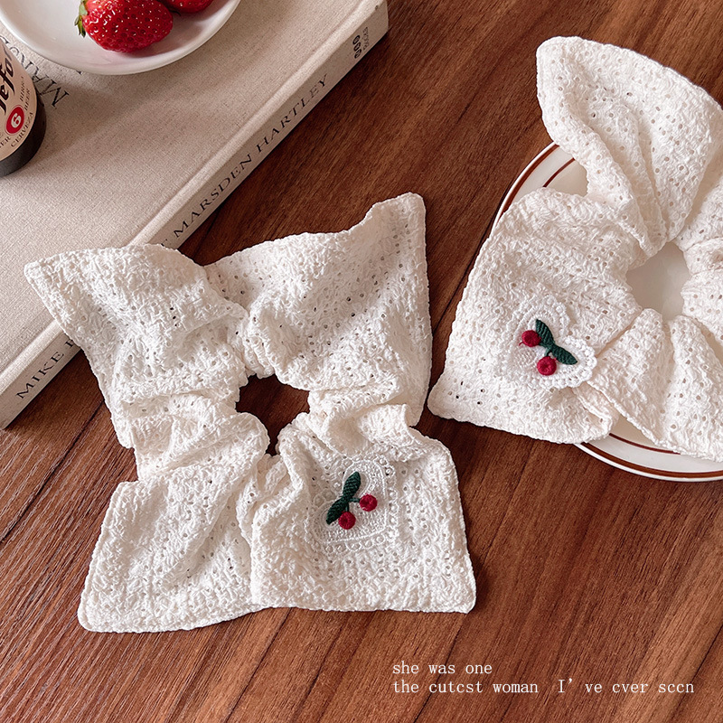 韩系刺绣樱桃镂空方巾大肠发圈方形扎头发皮筋马尾丸子头头绳发饰