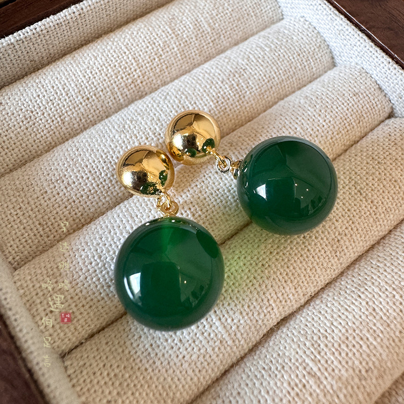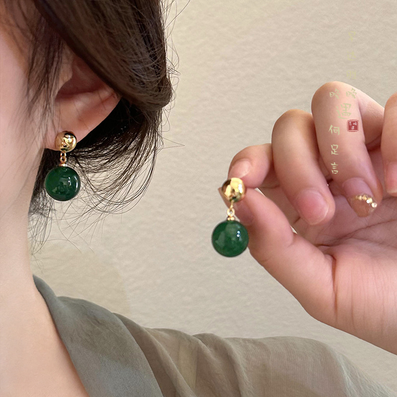 新中式绿色仿玛瑙珍珠耳环女复古国风独特设计高级感耳钉夏天耳饰