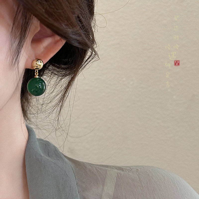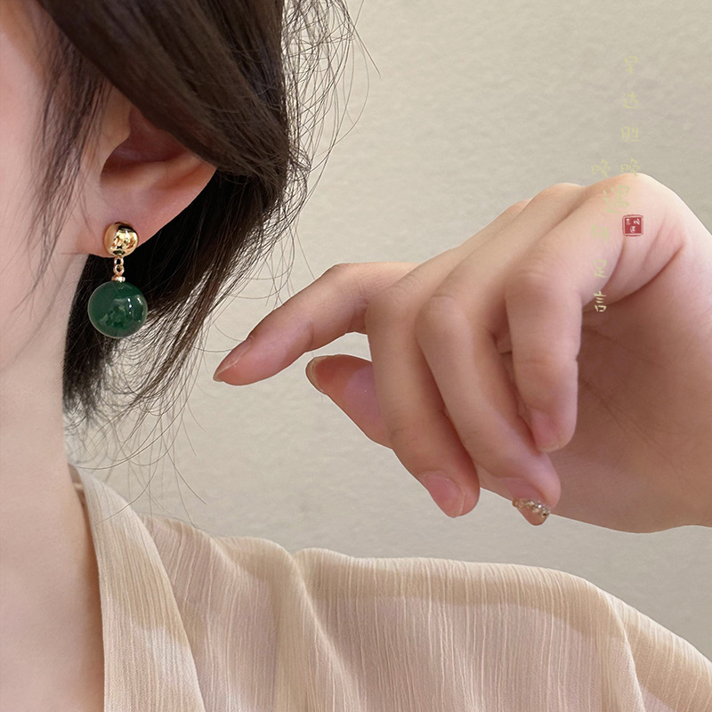 新中式绿色仿玛瑙珍珠耳环女复古国风独特设计高级感耳钉夏天耳饰 投诉