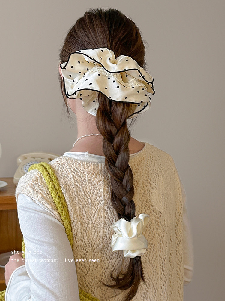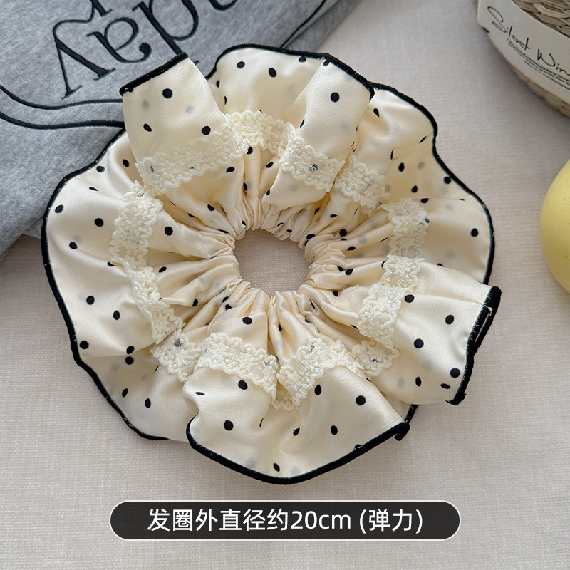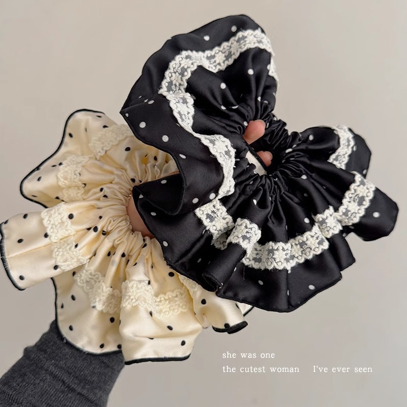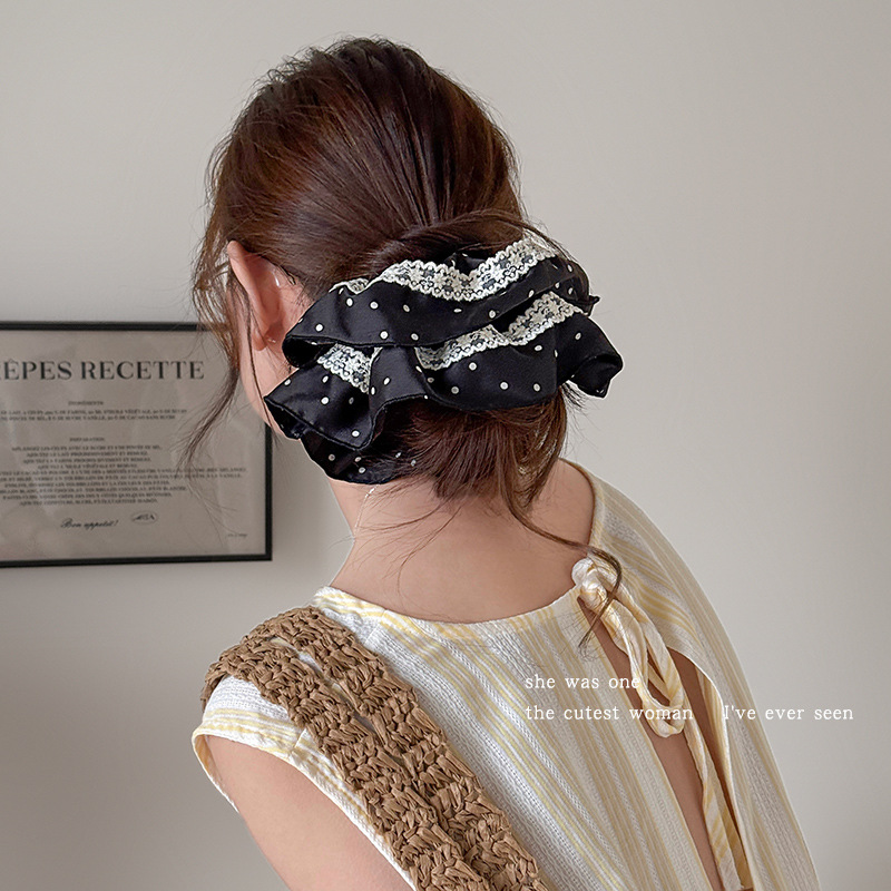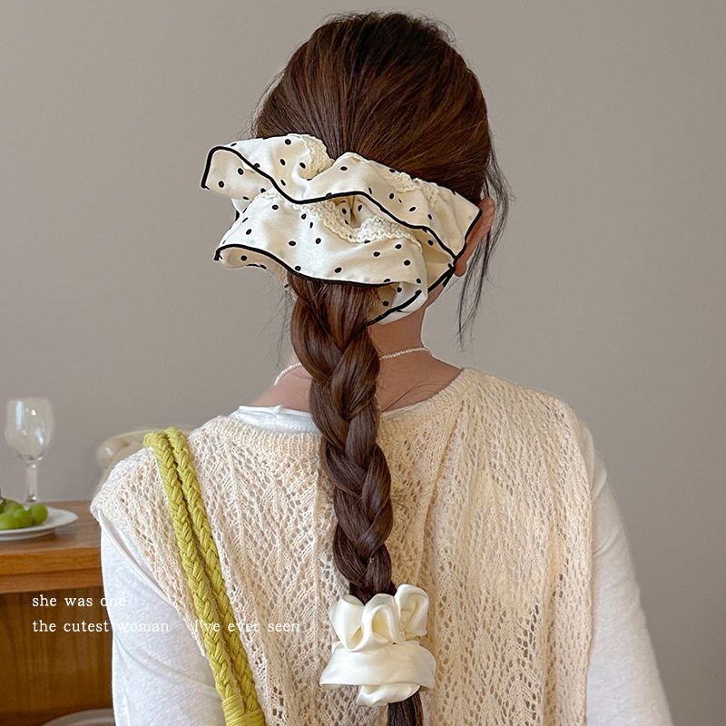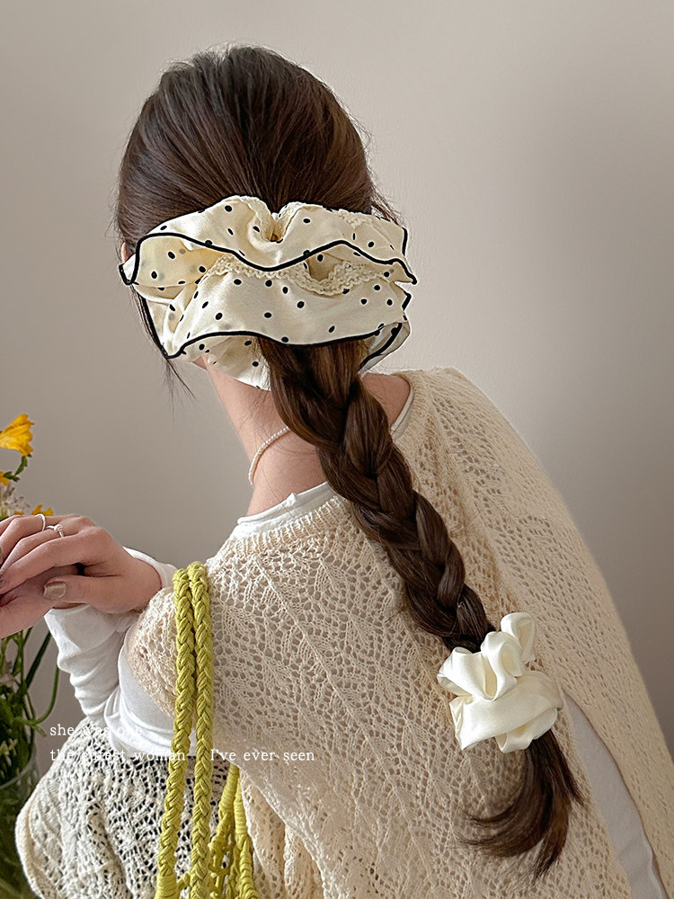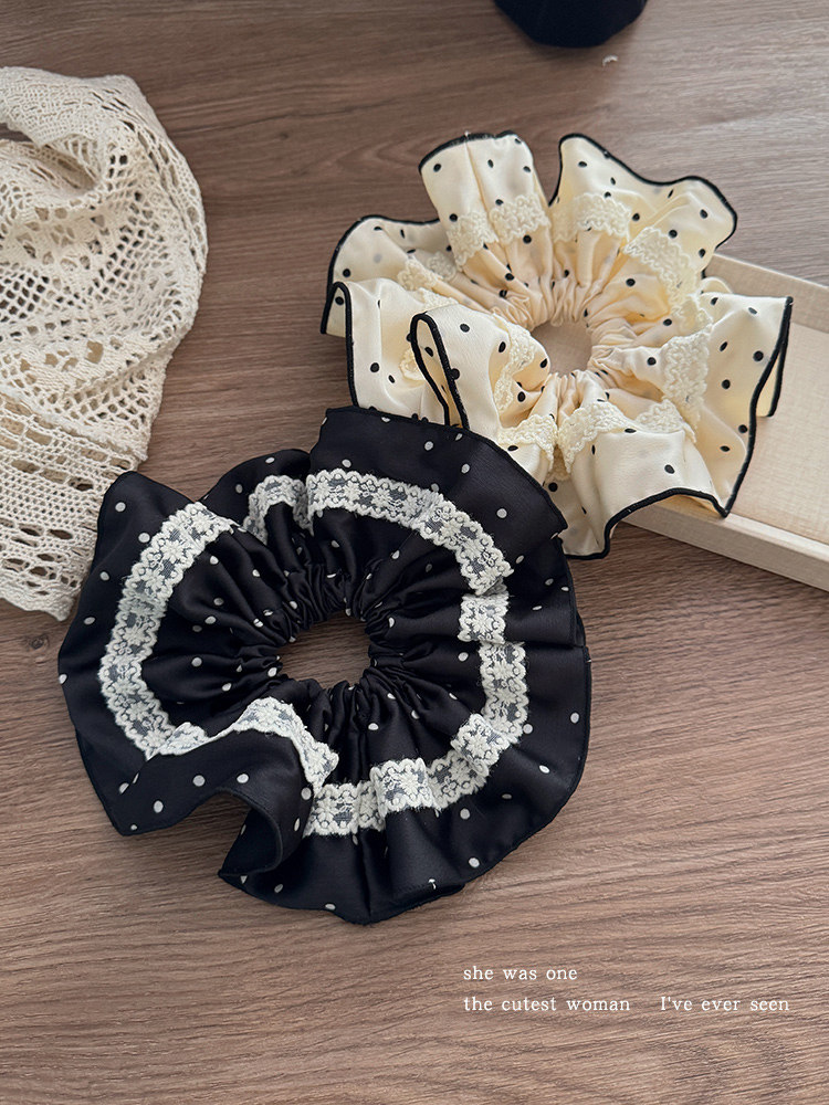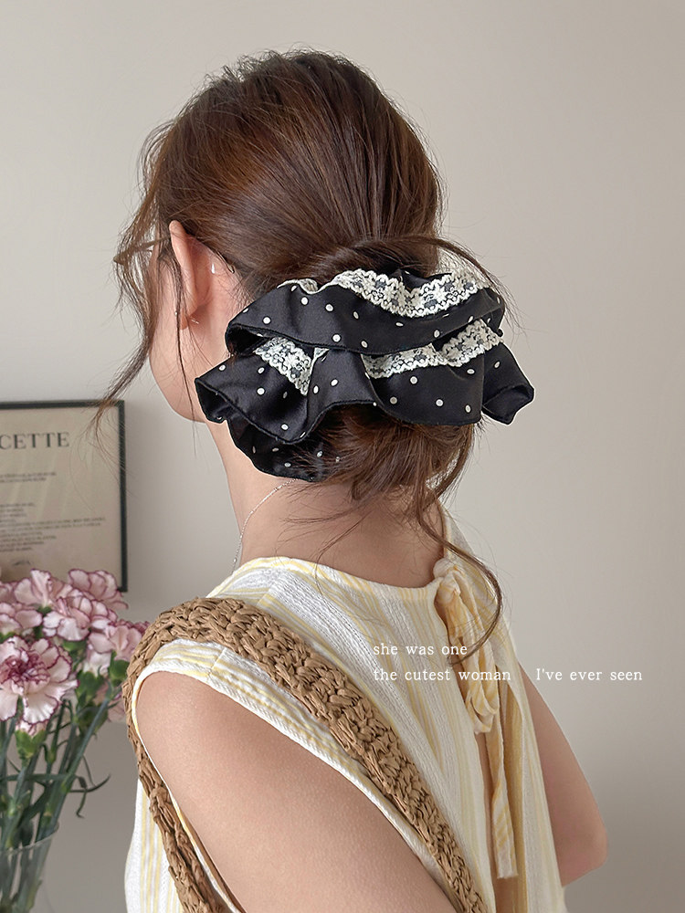 法式花边蕾丝波点大肠发圈女高级感丸子头绳扎马尾超大号头花发绳