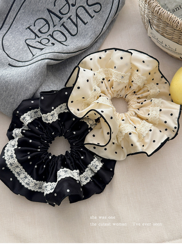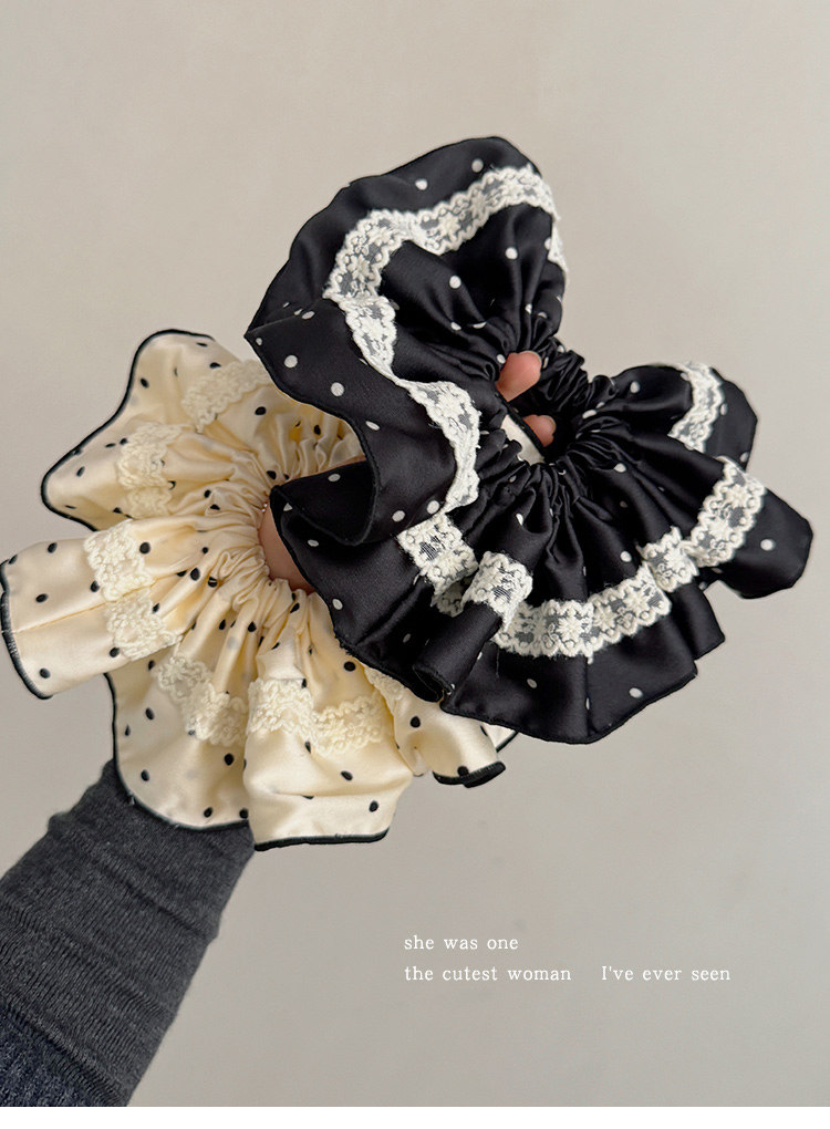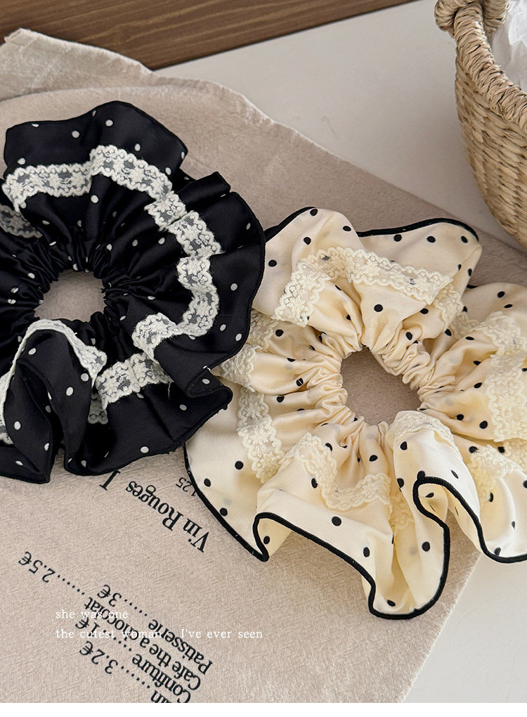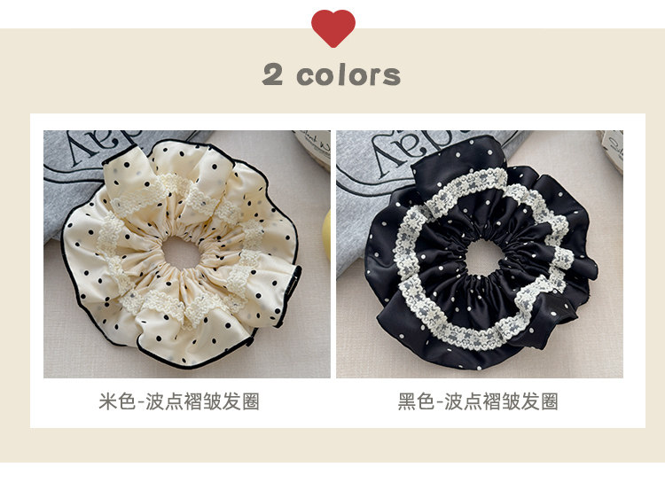 法式花边蕾丝波点大肠发圈女高级感丸子头绳扎马尾超大号头花发绳 投诉